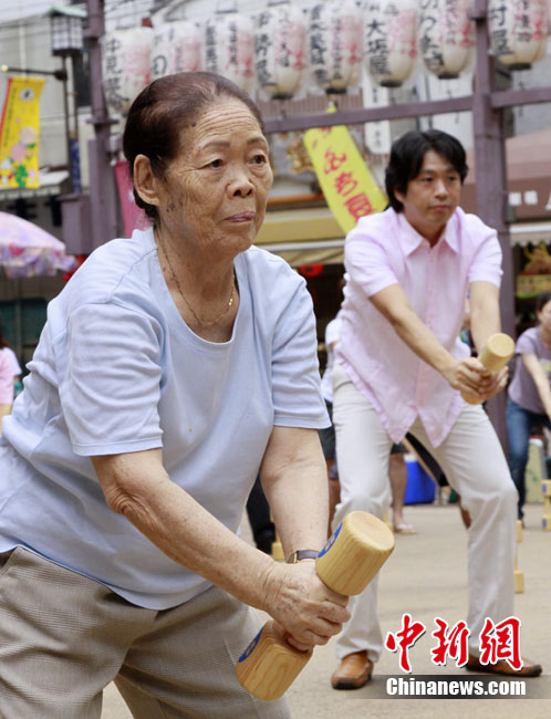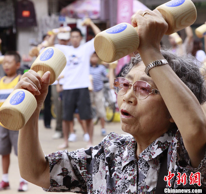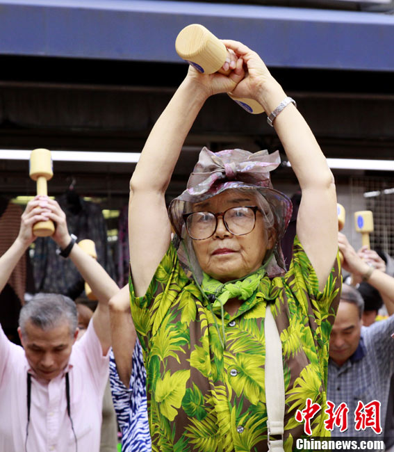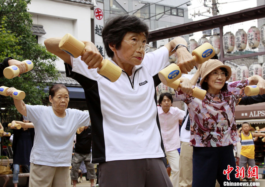 日本民众集体做哑铃操迎接敬老日