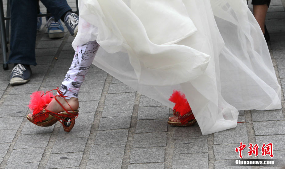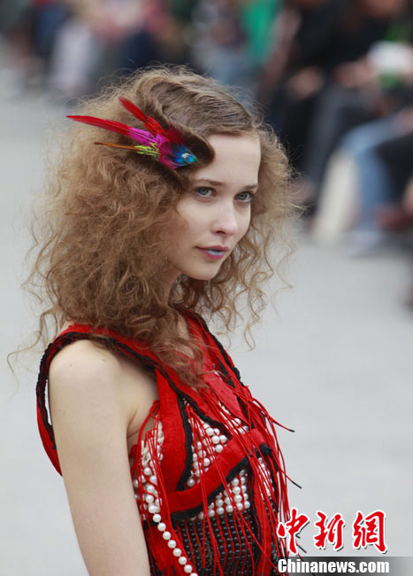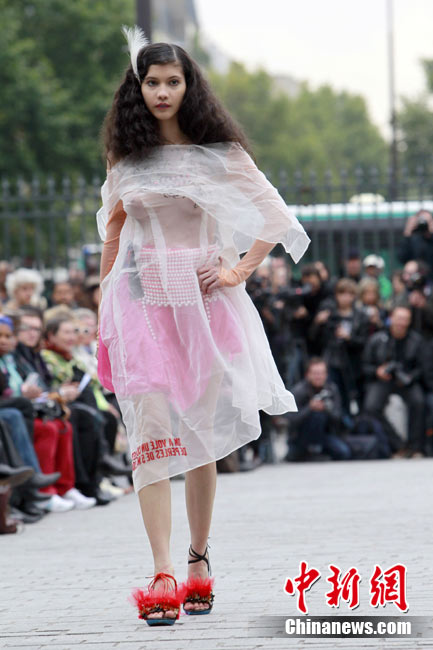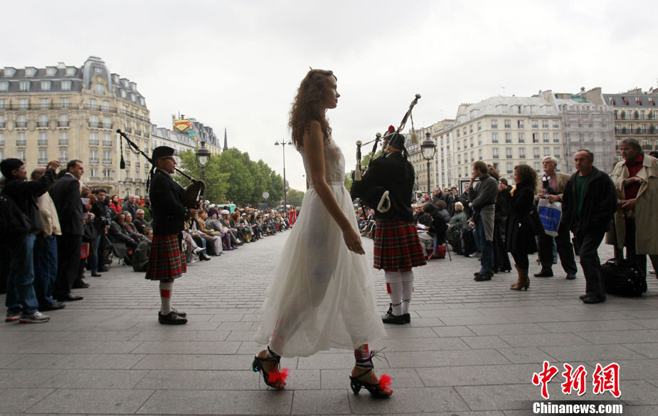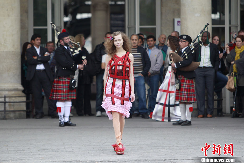 9月28日,法国巴黎,众靓模在巴黎火车站(Gare de L’est )上演了一场另类走秀。