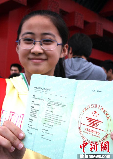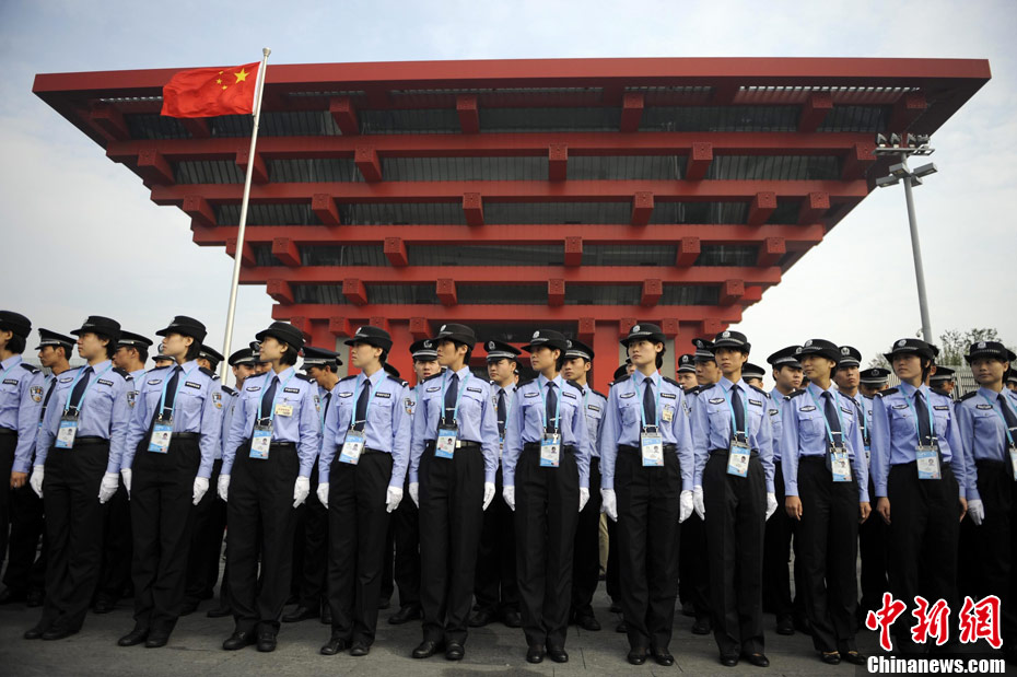 10月1日,在世博园浦西船坞广场,56个民族代表准备参加升国旗仪式。新华社记者 郭磊 摄