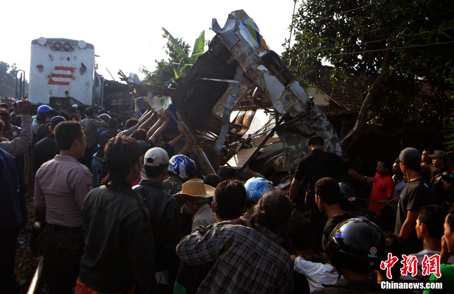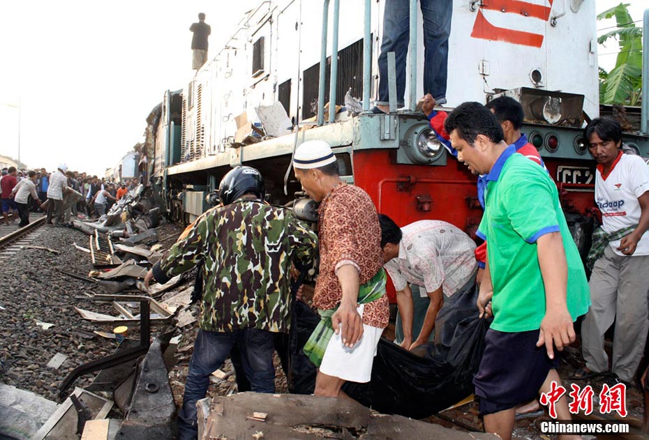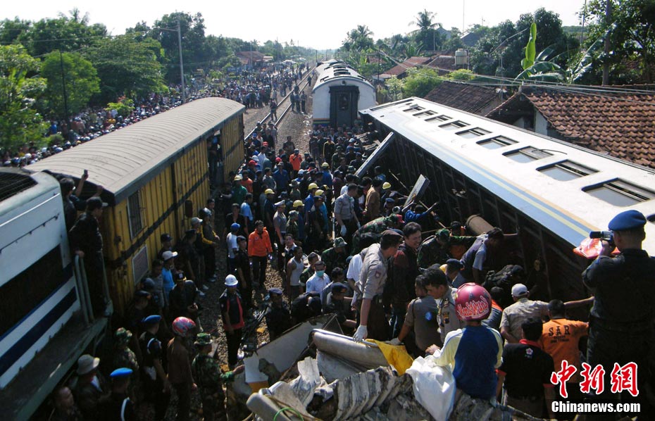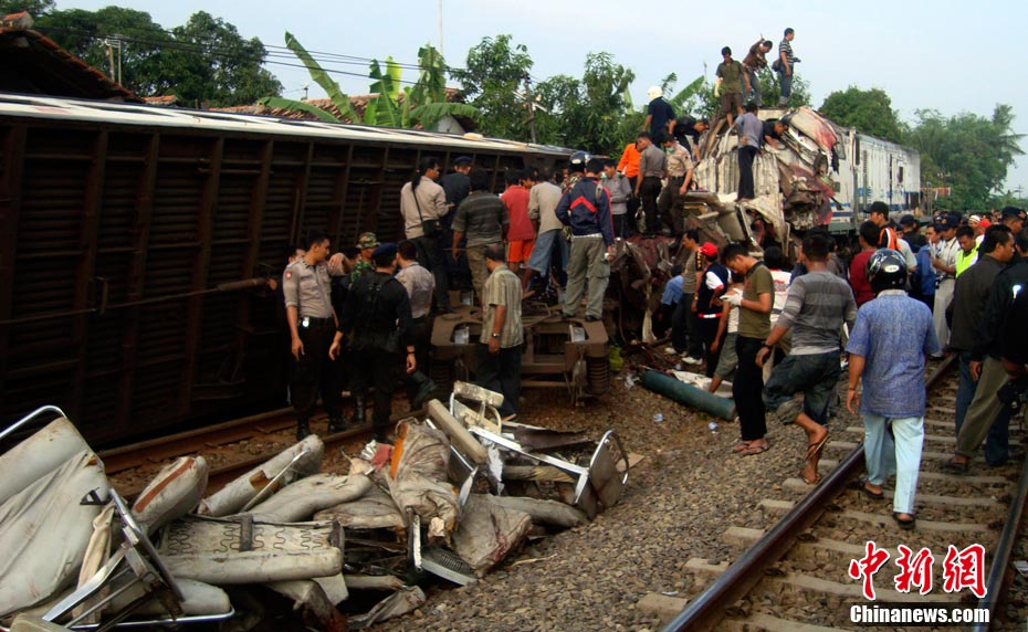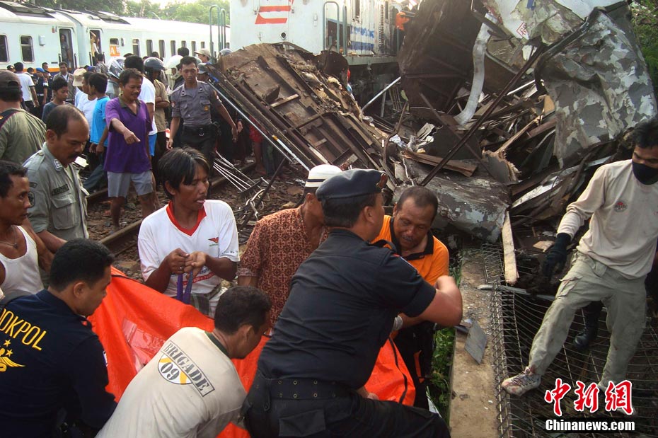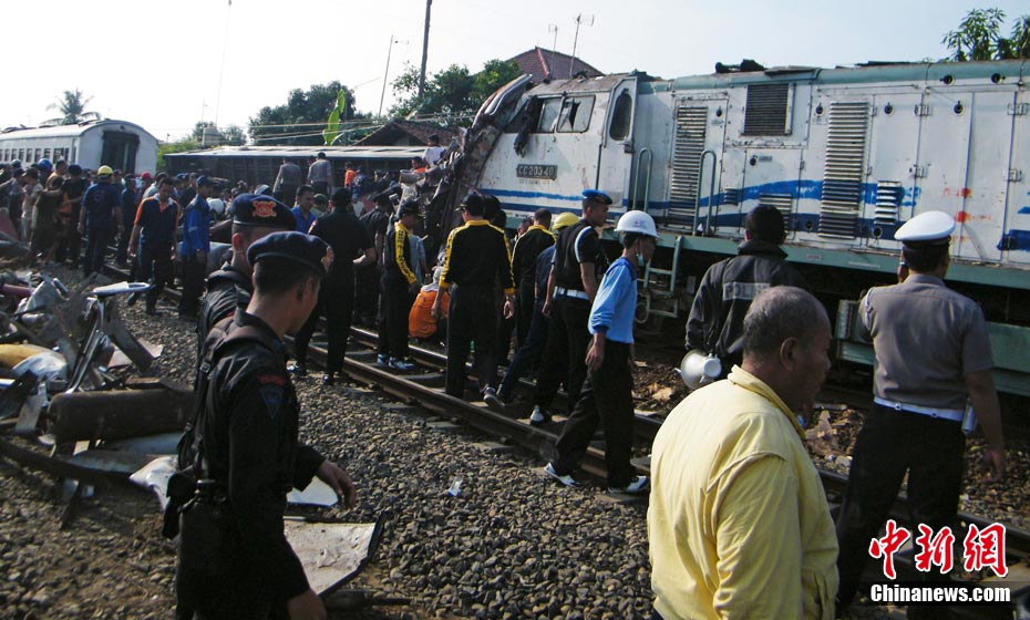 印尼中爪哇省2号发生火车相撞事故,至少已造成33人死亡。 事发在中爪哇北岸的珀塔鲁坎,一列行驶中的列车,于凌晨约3点钟,撞向一列停在车站内的列车,当时大部分人都在睡眠中,因此事故造成严重伤亡。
