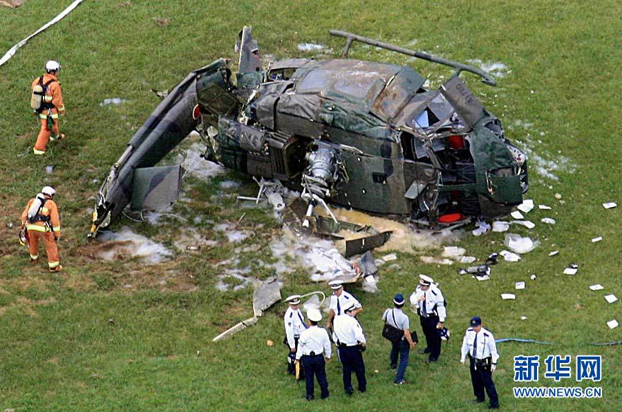 10月3日在日本大阪府八尾市陆上自卫队基地拍摄的直升机坠毁现场。当日,日本陆上自卫队一架直升机在大阪府八尾市的陆上自卫队基地坠毁,造成4名机上人员受伤。图片来源:新华网