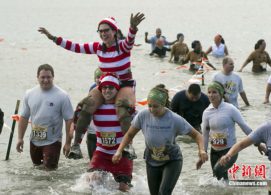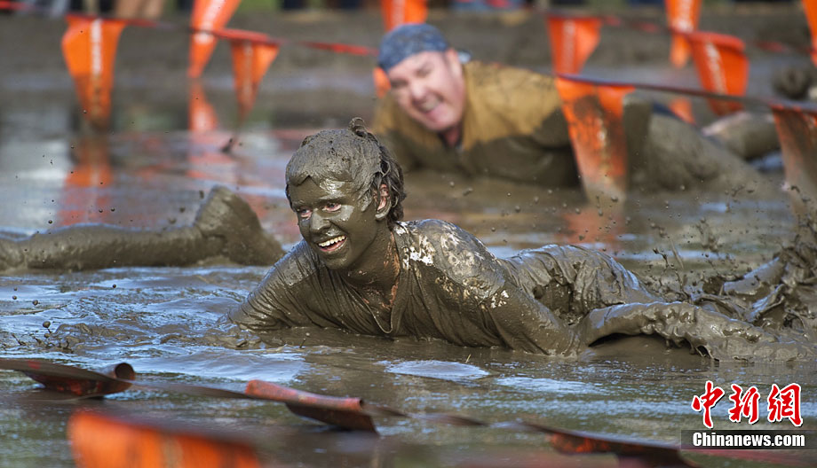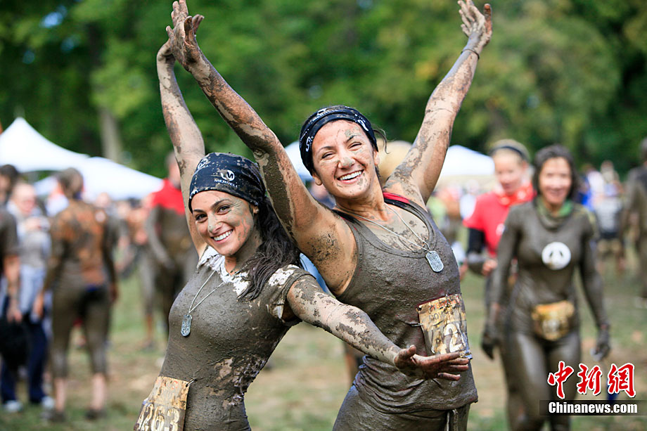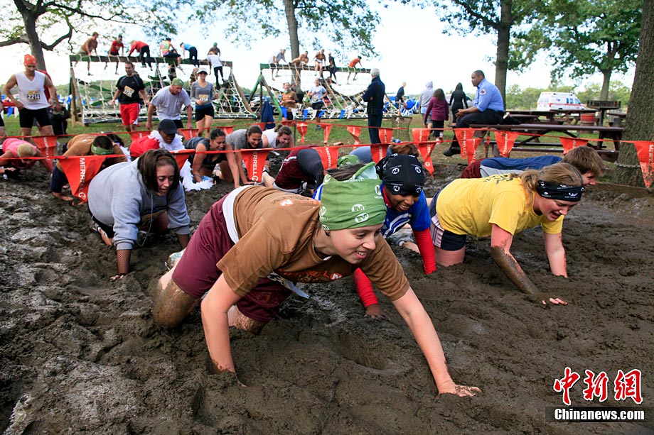 美国纽约举办趣味泥地赛跑