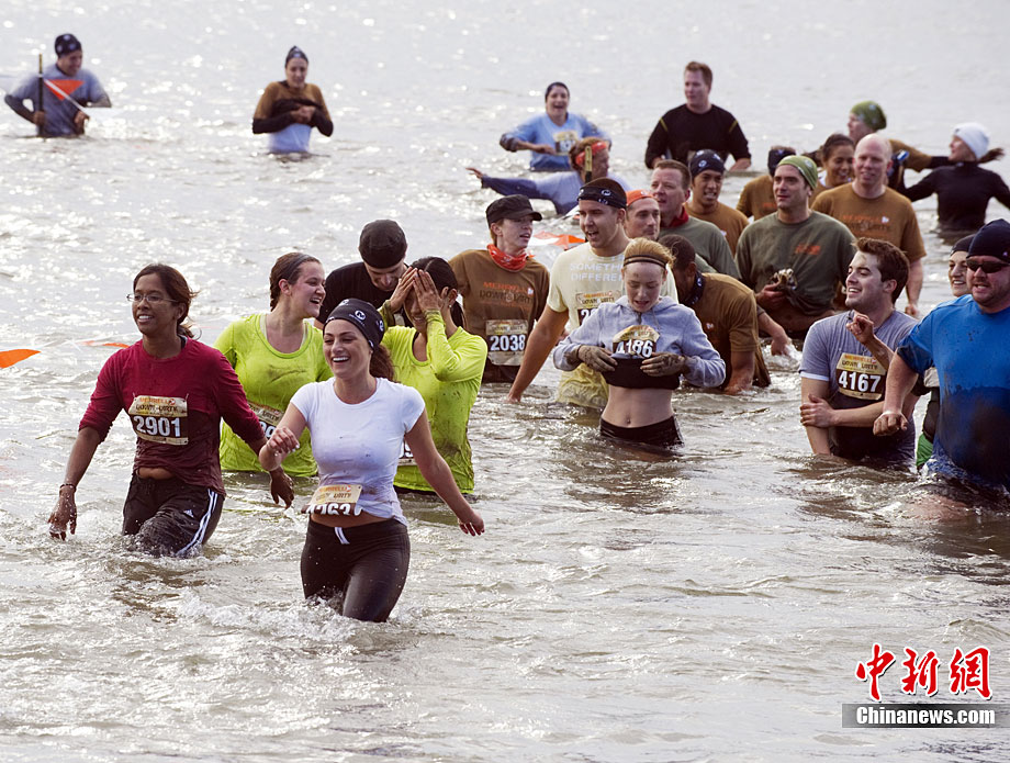 当地时间10月3日,数千名跑步爱好者参加了在美国纽约梅里尔岛举行的泥地跑步大赛。参赛者要在长达一英里的路程中趟过泥地、穿过海滩和各种障碍抵达终点。