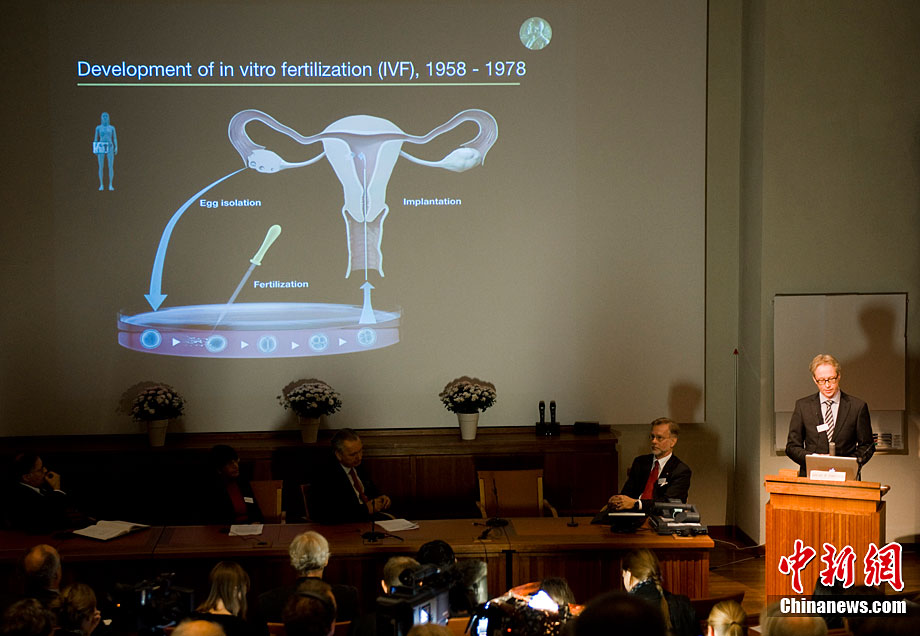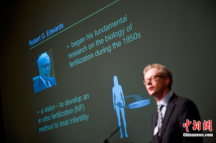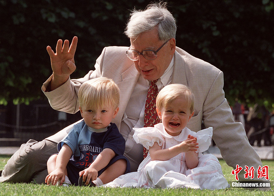 被誉为“试管婴儿之父”的英国科学家罗伯特·爱德华兹10月4日获得诺贝尔生理学或医学奖,他因身体欠佳未对获奖消息发表感言。图为2008年7月12日,爱德华兹(左)与世界第一个试管婴儿路易斯(右)和她的儿子、母亲合影。