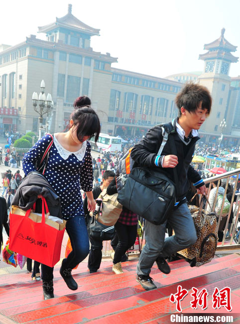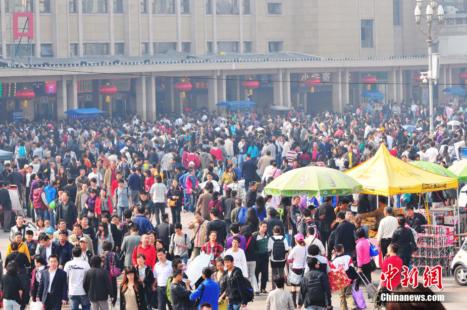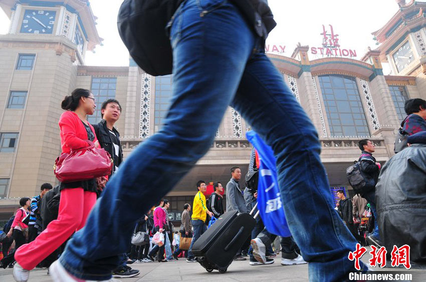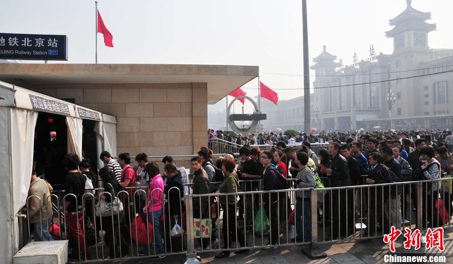 2010年10月6日,国庆“十一”黄金周长假即将结束,北京站、北京西站迎来返程客流高峰。樊甲山 摄 图片来源:CFP视觉中国