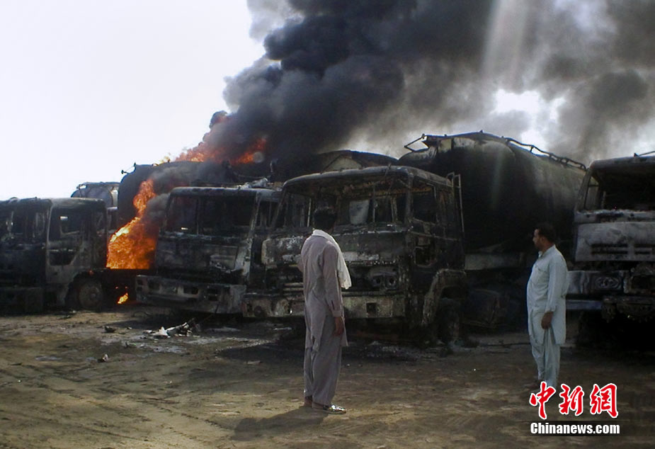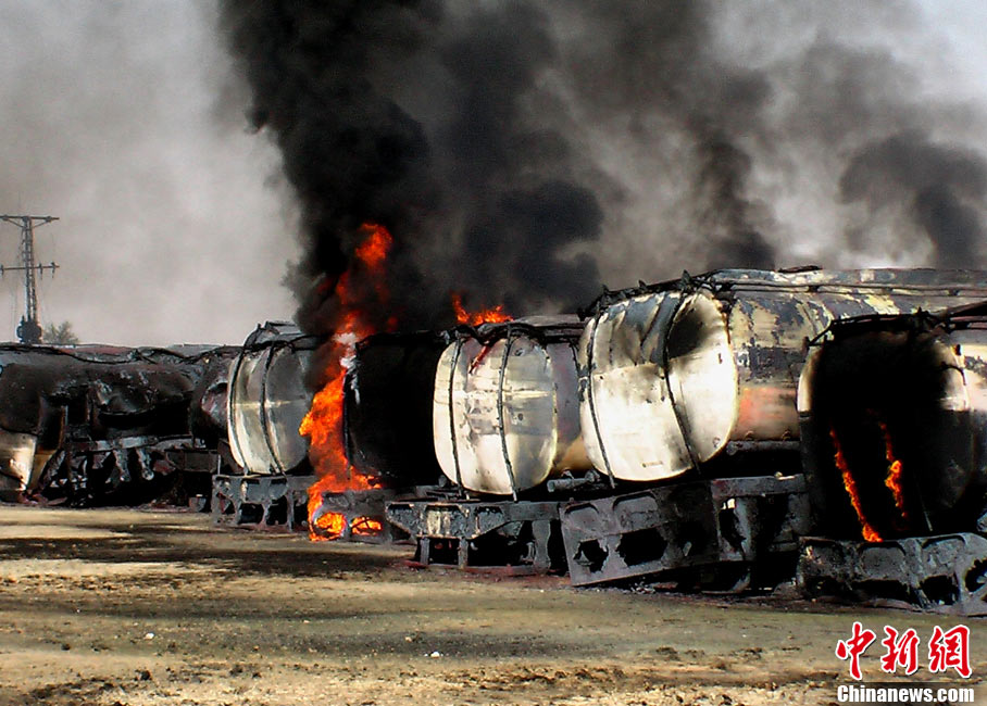 10月9日,北约一个运输车队在巴基斯坦西南部俾路支省首府奎达东南约200公里处遭到武装分子袭击,至少29辆油罐车被烧毁。