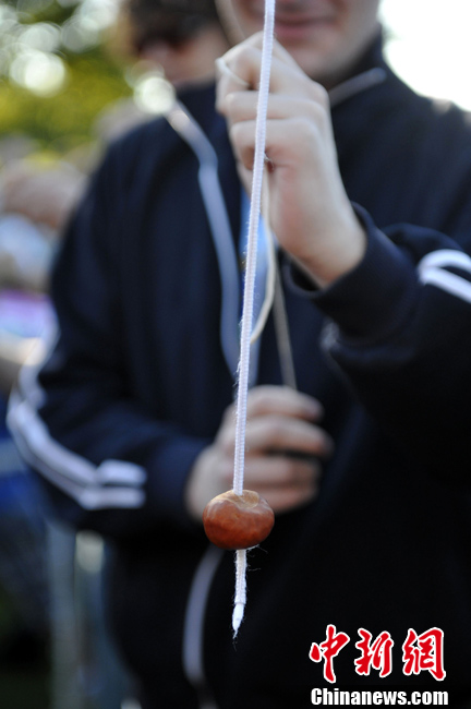 10月10日,英国北安普敦郡昂德尔,传统的的2010世界板栗竞标赛在此举行。参赛选手要用自己手中的板栗设法击碎对方的板栗,比赛结果按照击碎对方板栗数量计算。这项比赛开始于1965年。