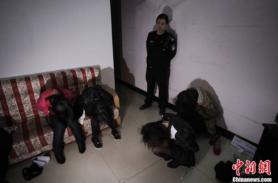 2010年10月11日,北京警方启动“电网3号”专项行动,在全市范围内严查严打利用出租房、足疗店、养生馆等处所为掩护从事“黄、赌、毒”的违法犯罪活动。赵亢 摄 图片来源:CFP视觉中国
