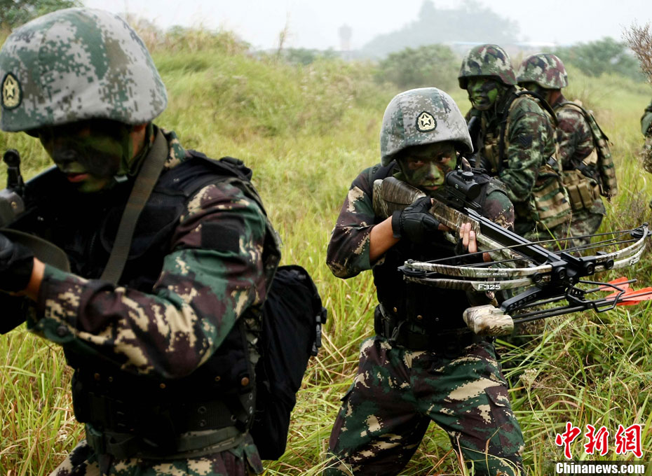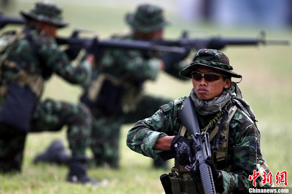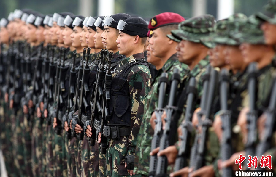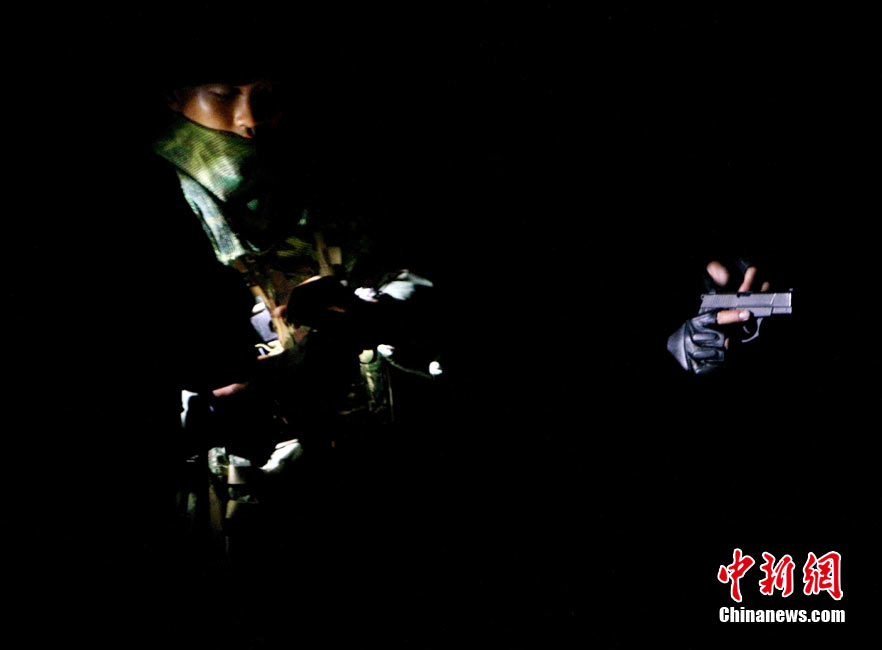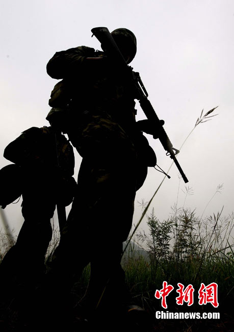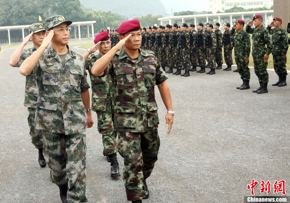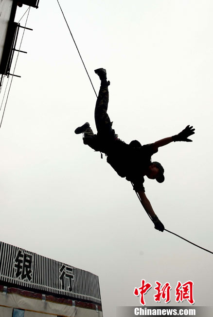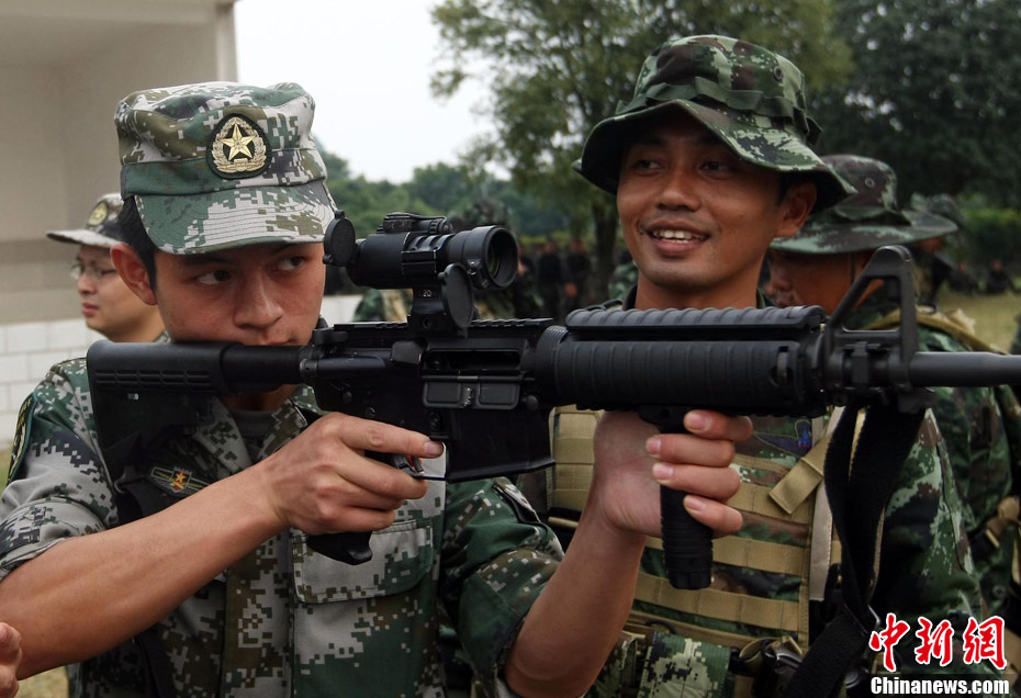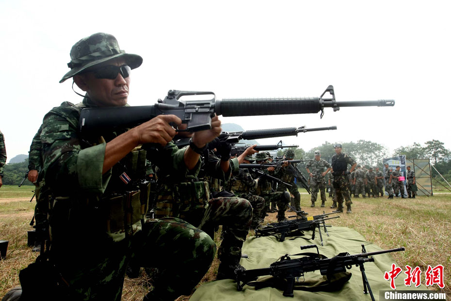 10月12日,在广西桂林进行的中泰陆军特种部队反恐联合训练开展混合编组机降突袭演练。中新社发 杜洋 摄