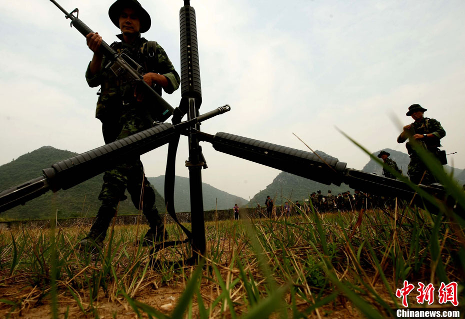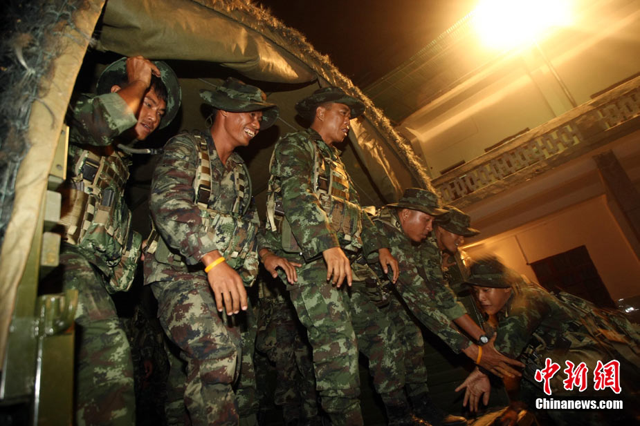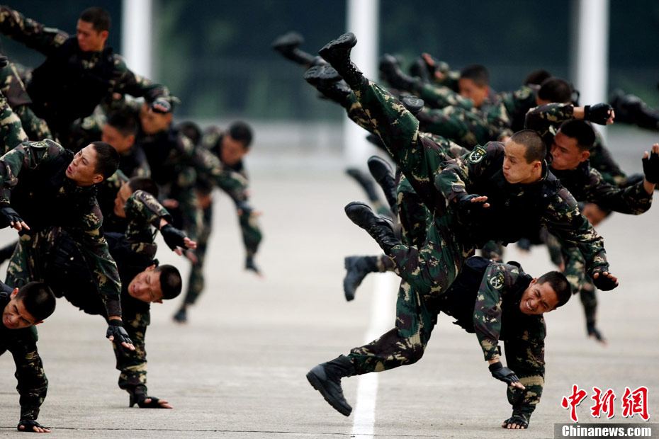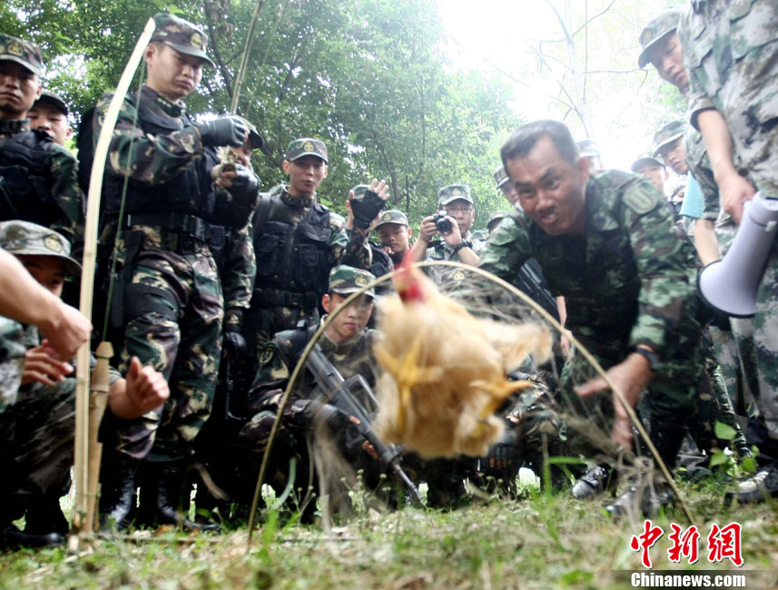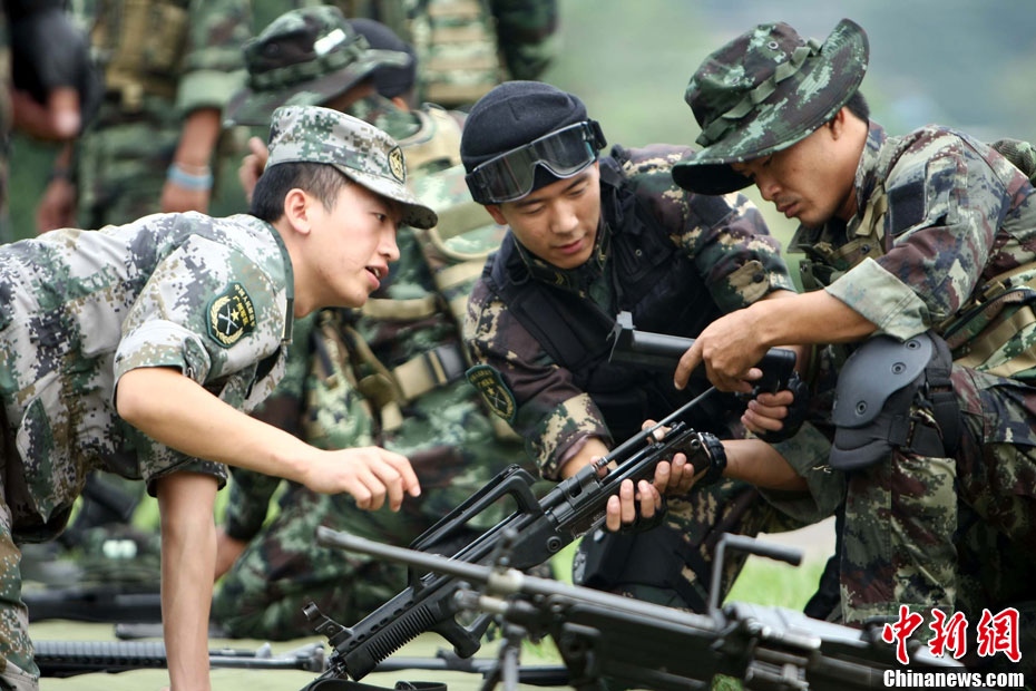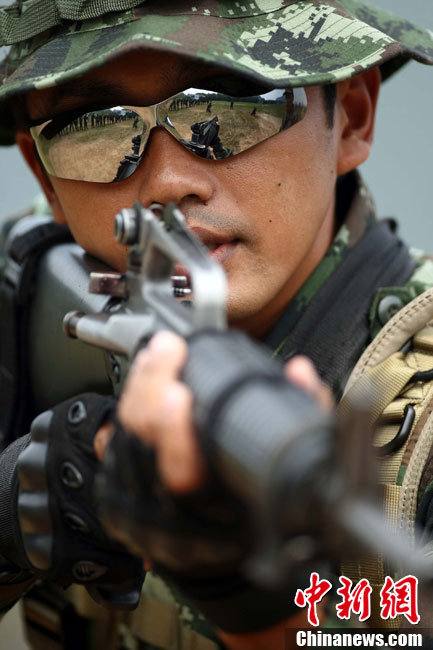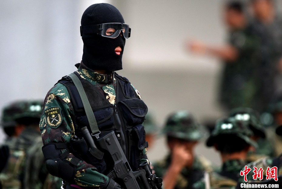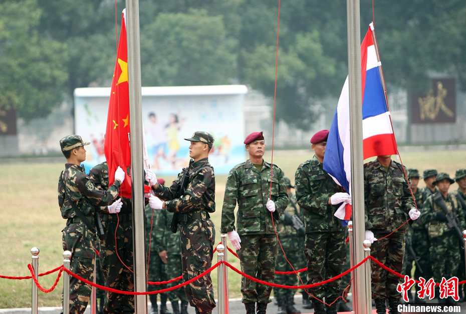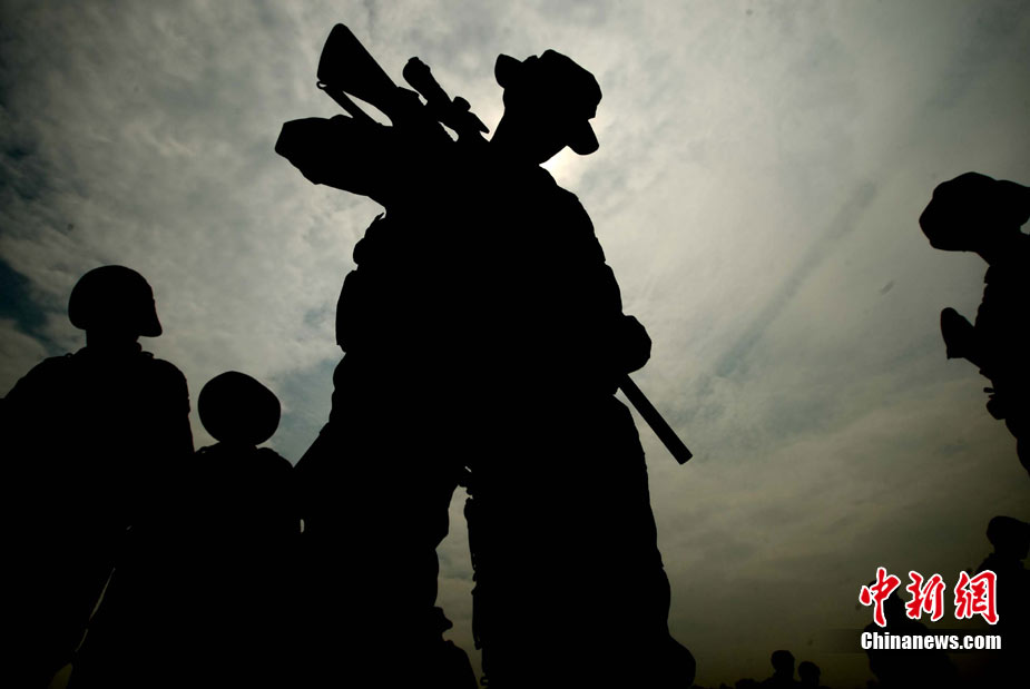 10月12日,在广西桂林进行的中泰陆军特种部队反恐联合训练开展混合编组机降突袭演练。中新社发 杜洋 摄