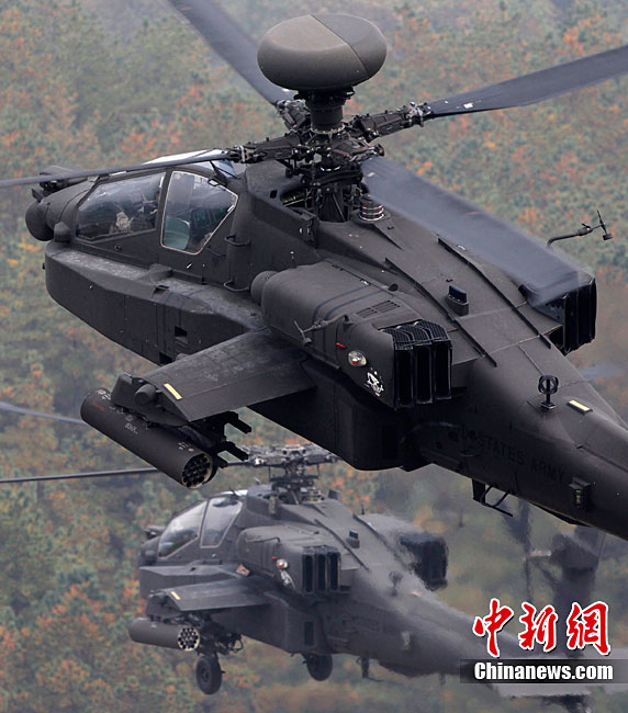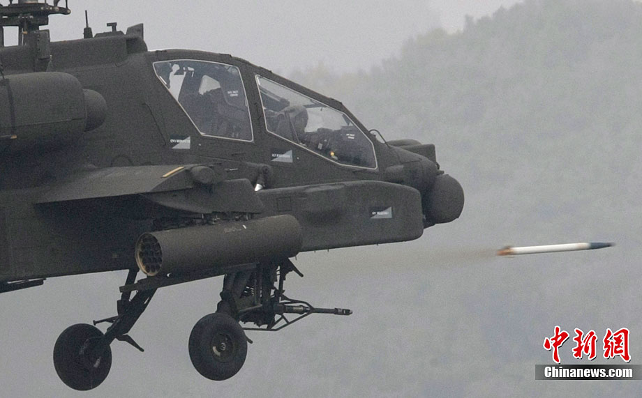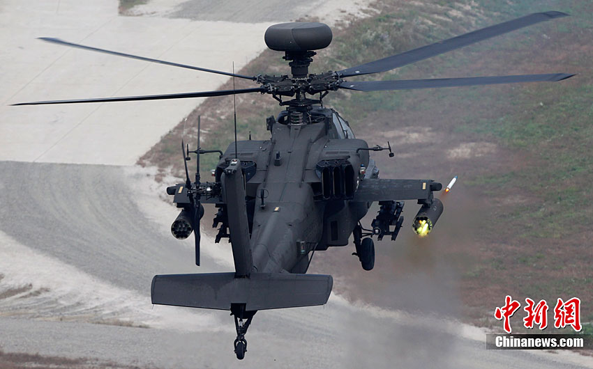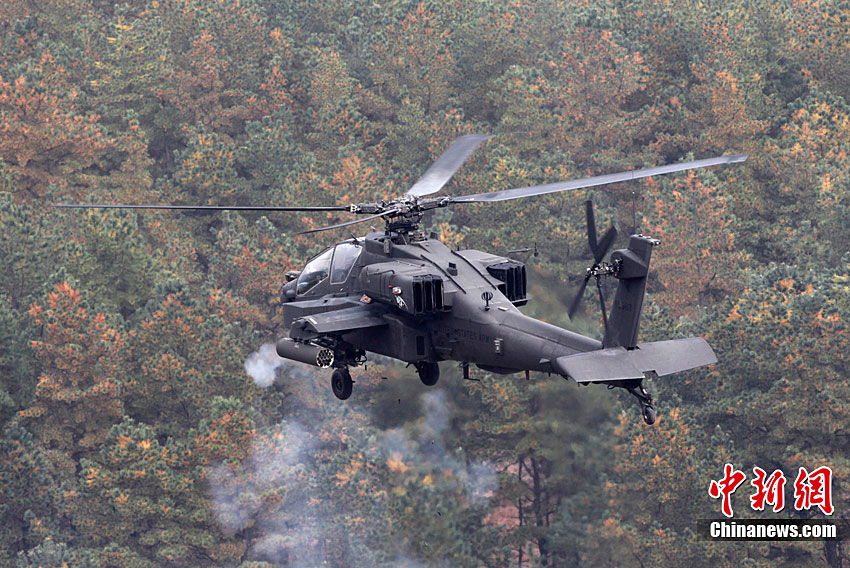 当地时间10月13日,韩国在釜山附近海域开始为期两天的防扩散联合演习。此次演习由韩国军队主导,美国、日本等15个国家参加。其中,韩国、美国、日本、澳大利亚参与海上拦截演习。韩军出动两艘韩国型驱逐舰、两艘登陆舰等舰艇。美国宙斯盾驱逐舰、日本4000吨级驱逐舰、澳大利亚P-3C巡逻机等参演。图为10月13日,美国AH-64武装直升机在韩国抱川进行防扩散联合演习中进行射击。