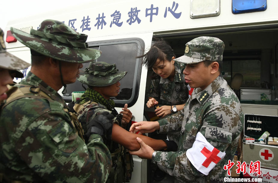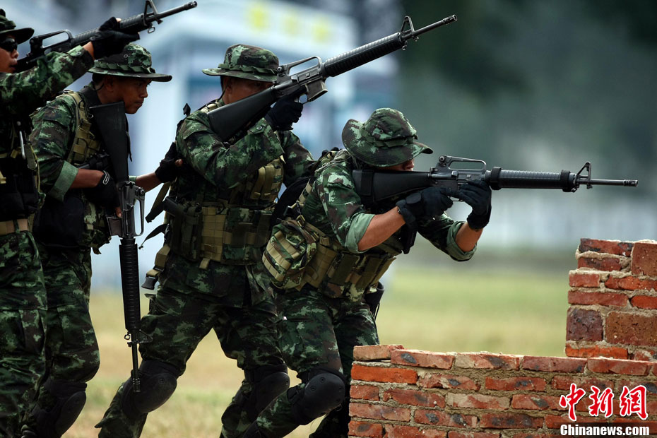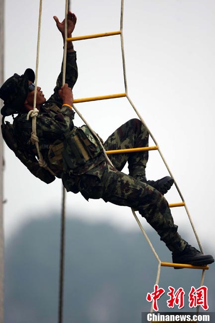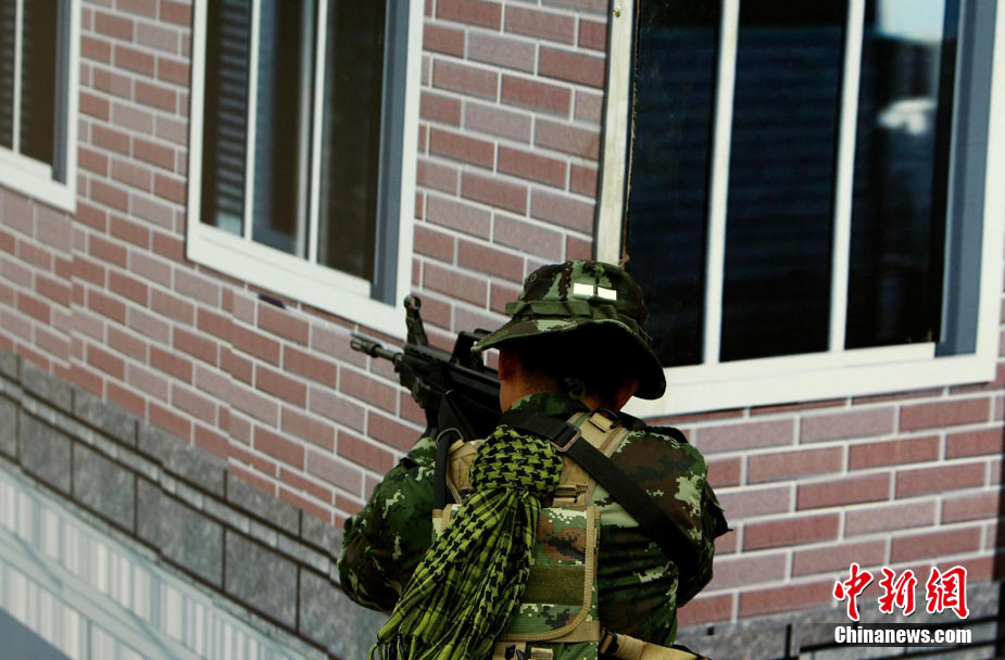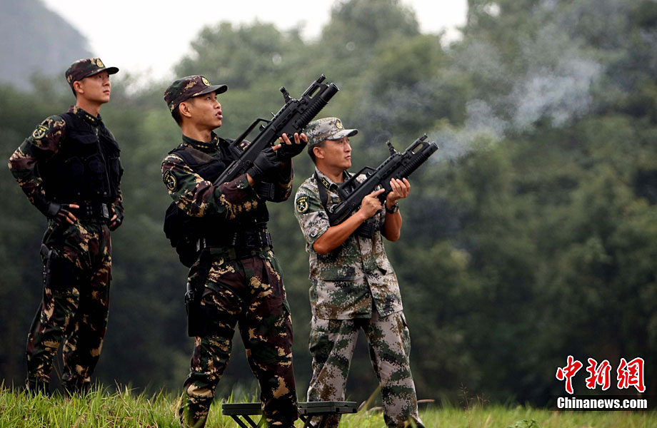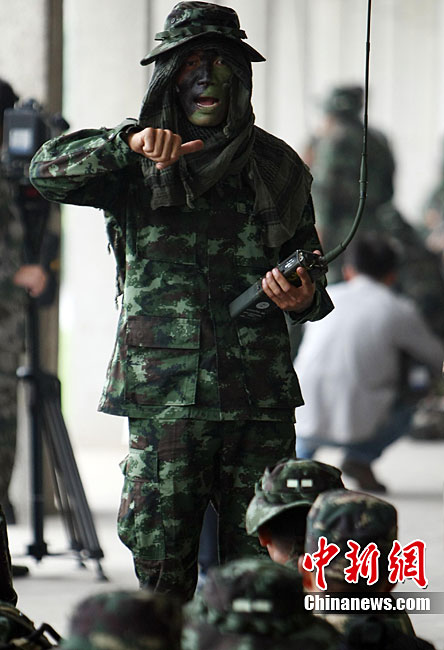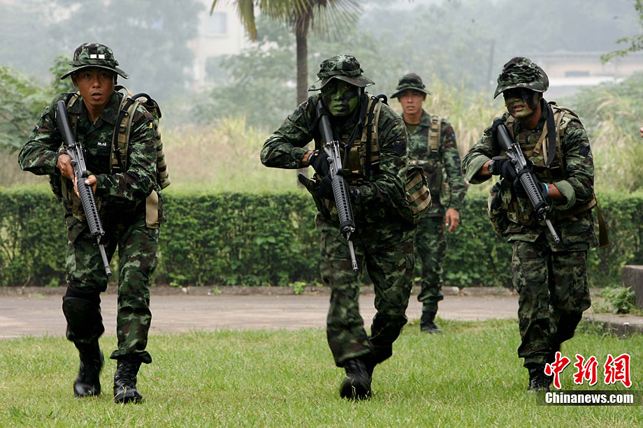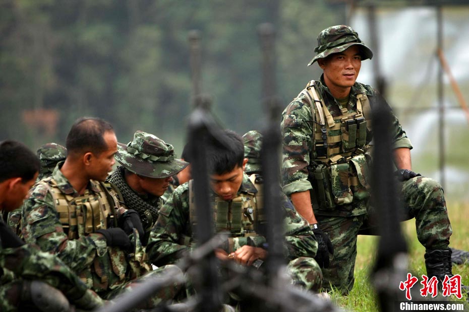 “突击-2010”中泰陆军特种部队反恐联合训练10月6日至20日在广西壮族自治区桂林进行。图为身着伪装服的狙击手。中新社记者 杜洋 摄