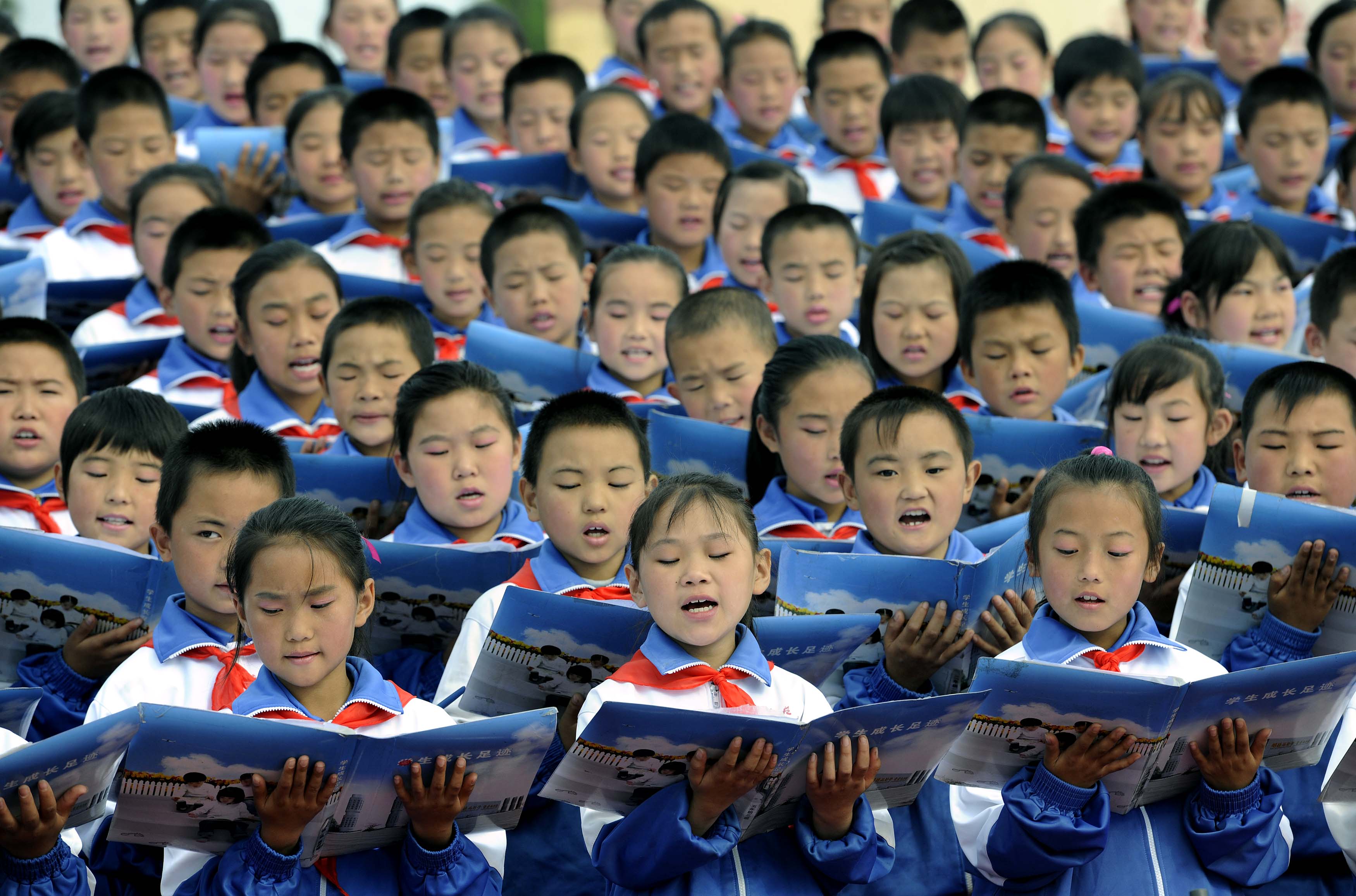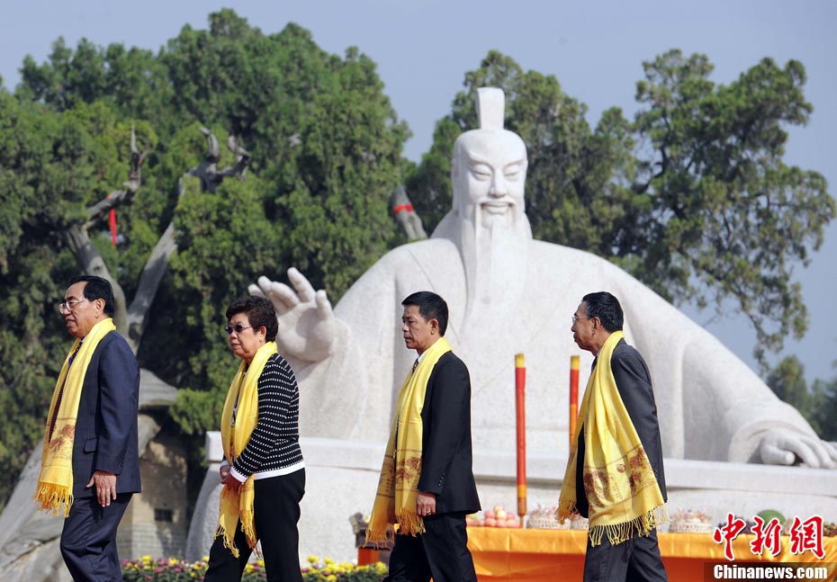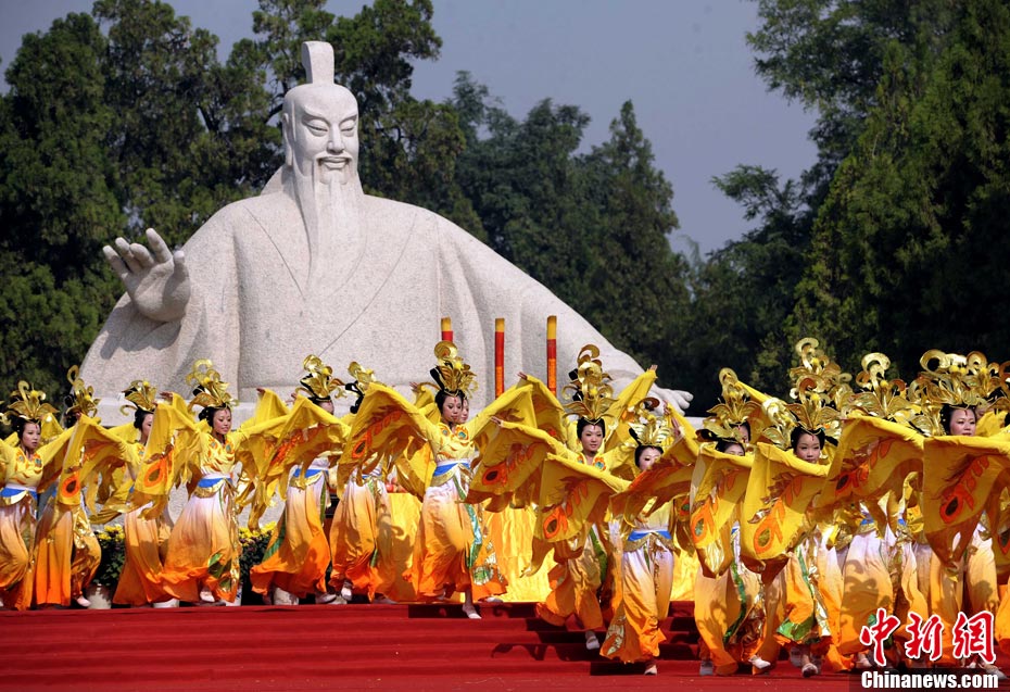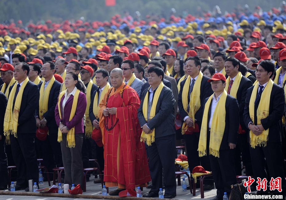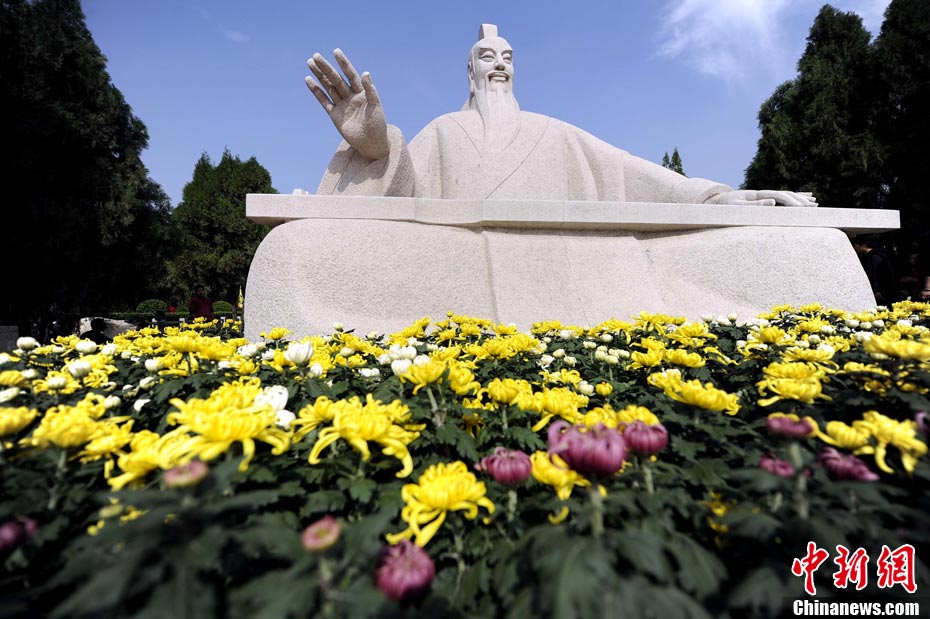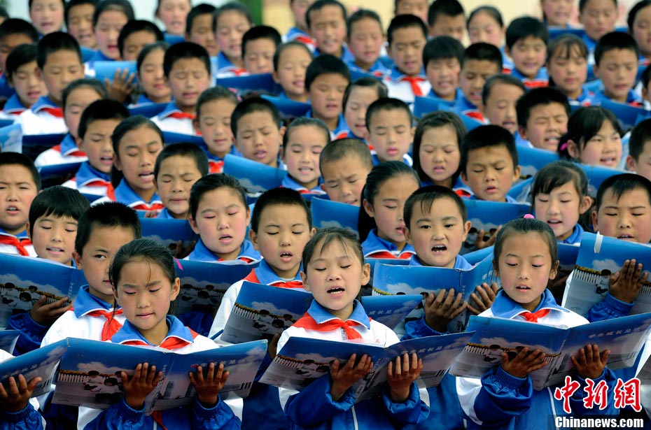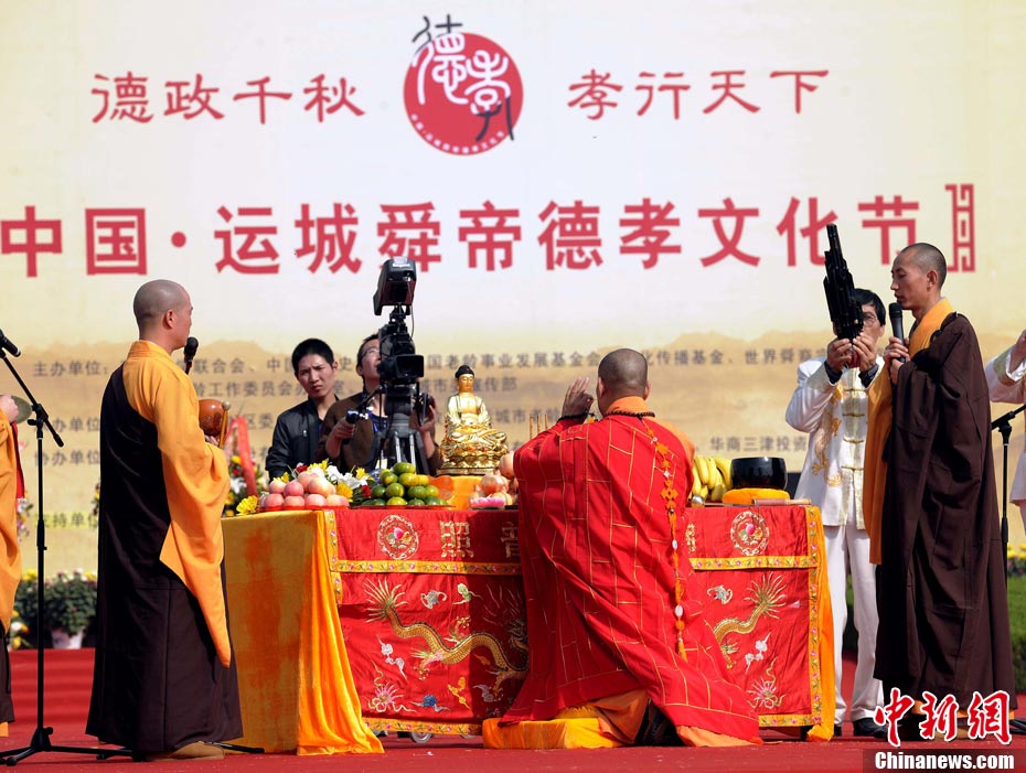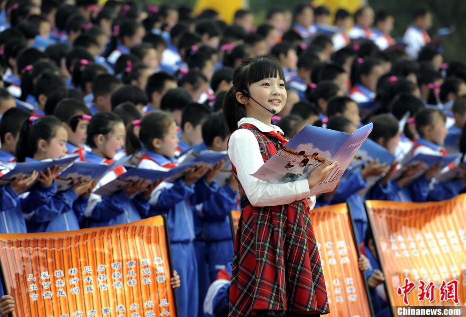 10月16日,运城舜帝德孝文化节在山西省运城市盐湖区鸣条舜帝陵开幕。舜帝以其独特的历史地位和杰出的历史功绩,被后人尊崇为“百孝之首”、“道德之祖”和“文明之元”,本届文化节主题也定义为“德政千秋、孝行天下”。图为运城千名小学生齐诵《弟子规》。中新社发 刘震 摄