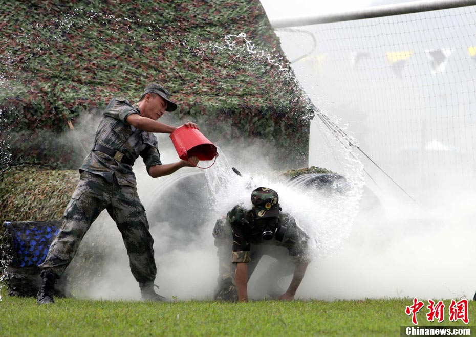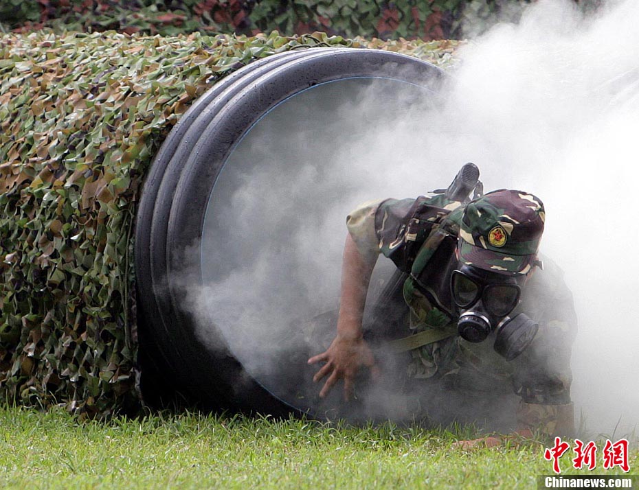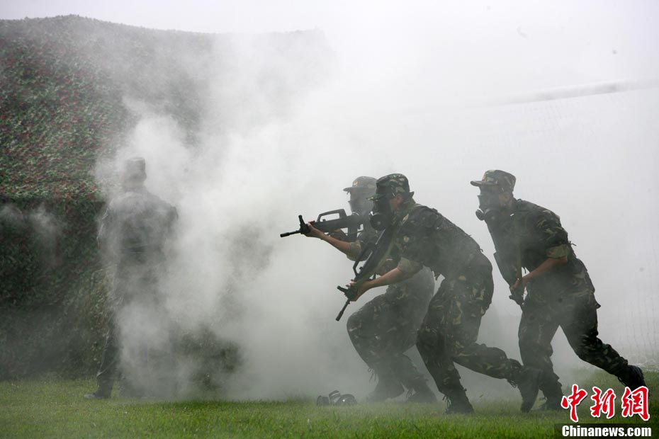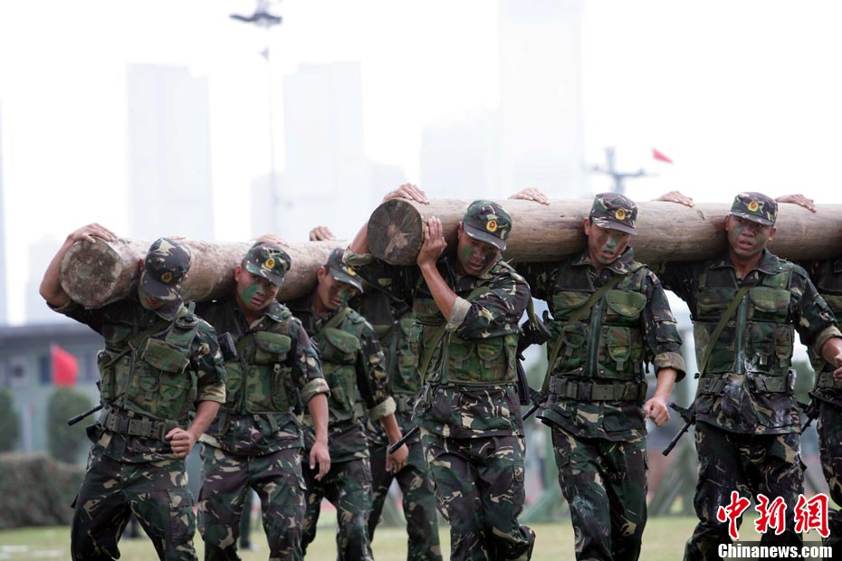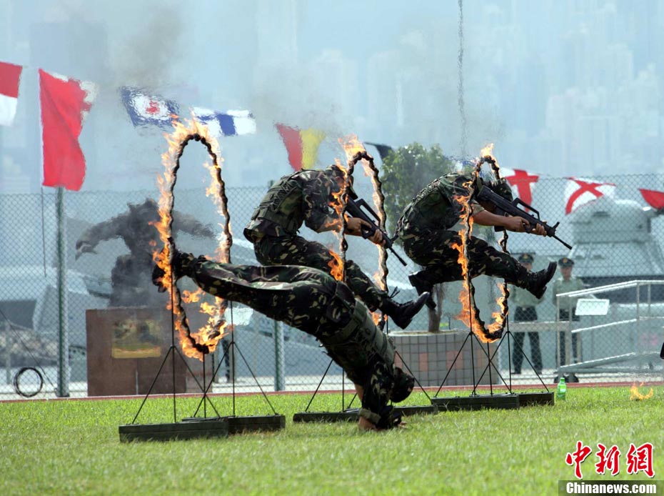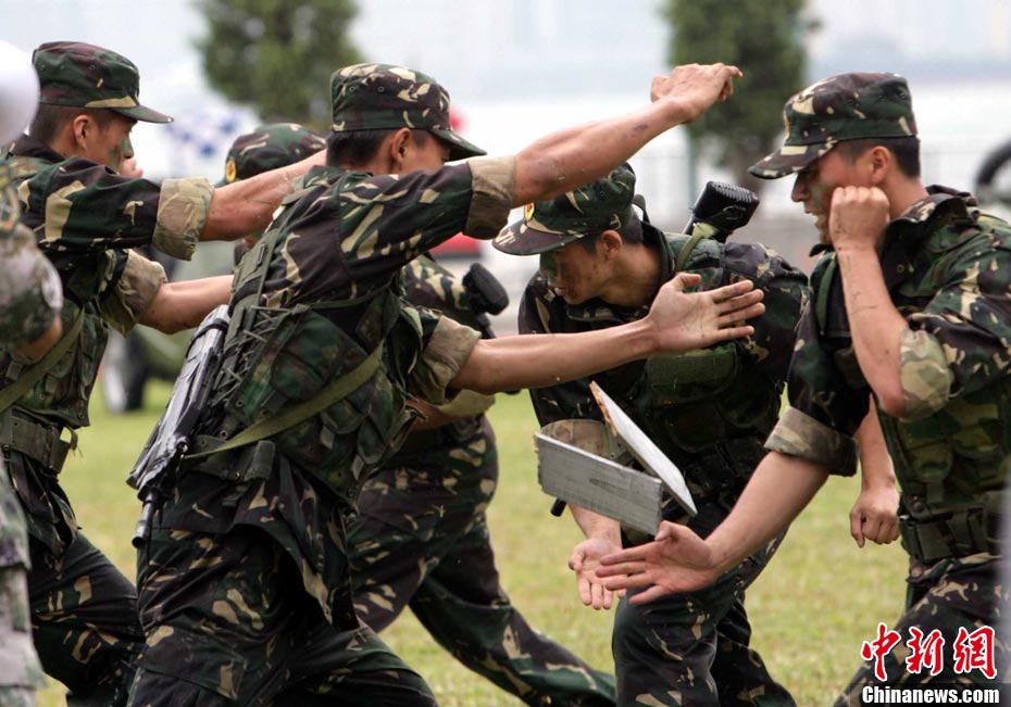 10月16日,中国人民解放军驻港部队特种兵在香港昂船洲海军基地进行“猎人战斗”演练,展示过硬的搏击功夫。当天,驻军与香港各大院校大学生联谊活动,以各种形式相互交流,增进香港学生对国家的了解。 中新社发 洪少葵 摄