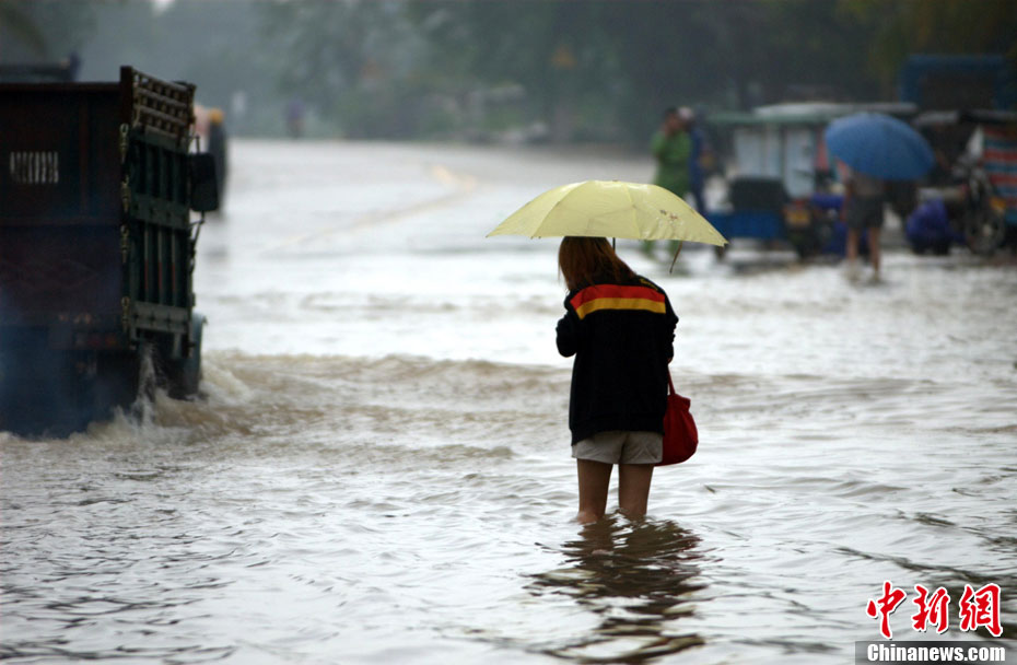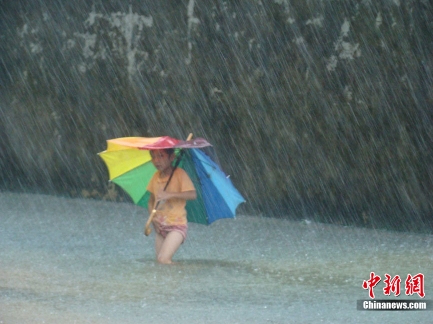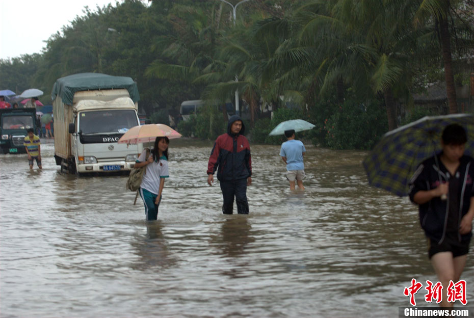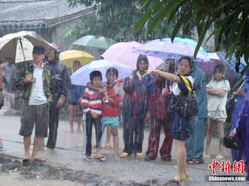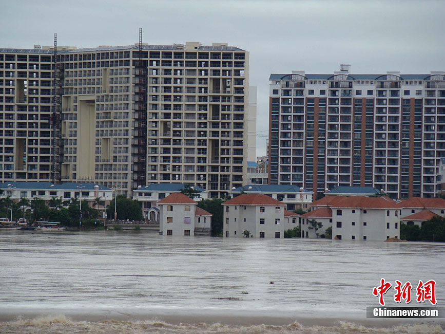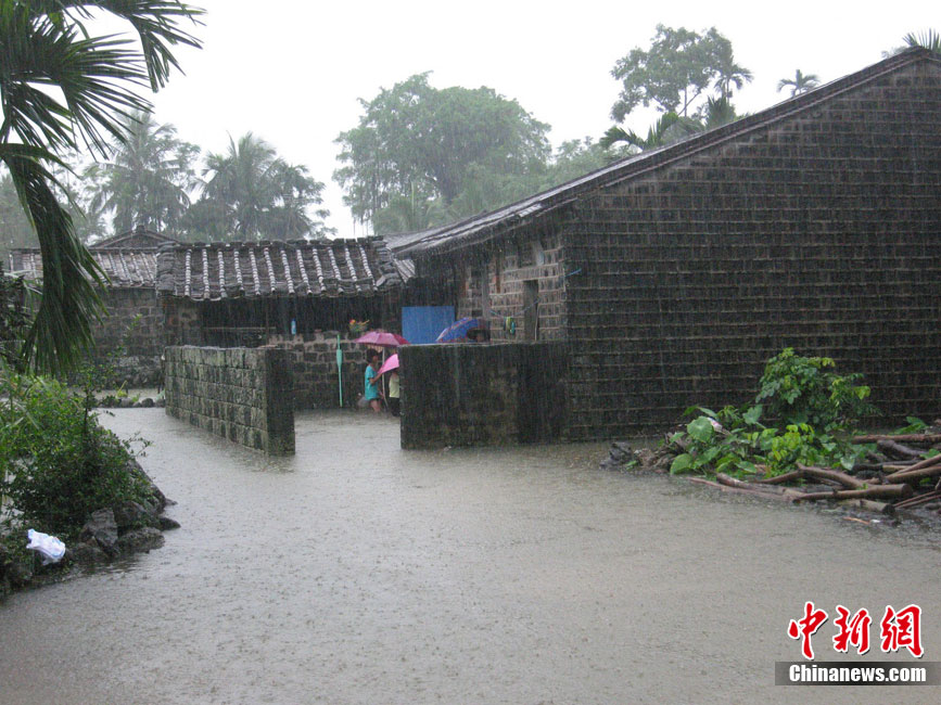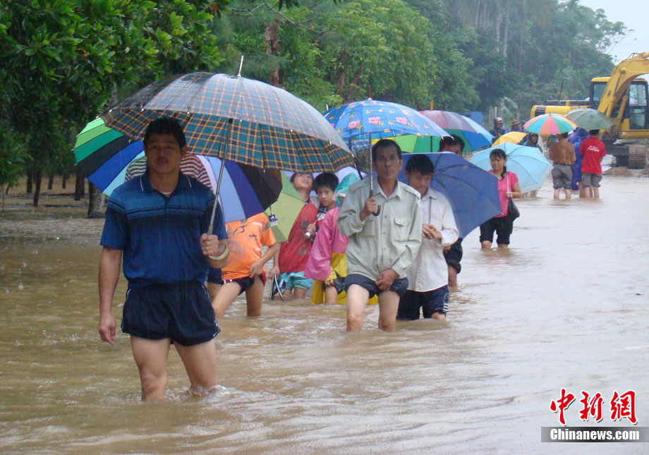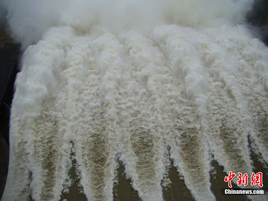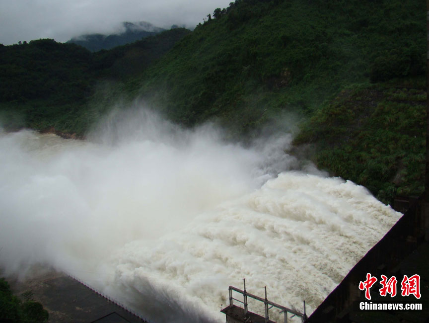 10月16日9时,受持续强降雨影响,琼海市牛路岭水库最高水位达105.16米,超过防洪限制水位105米,牛路岭水库水电站打开7个闸门,以每秒3000立方米流量泄洪到万泉河。当日上午,琼海市政府紧急将万泉河沿岸7乡镇群众紧急转移。中新社发 付美斌 摄