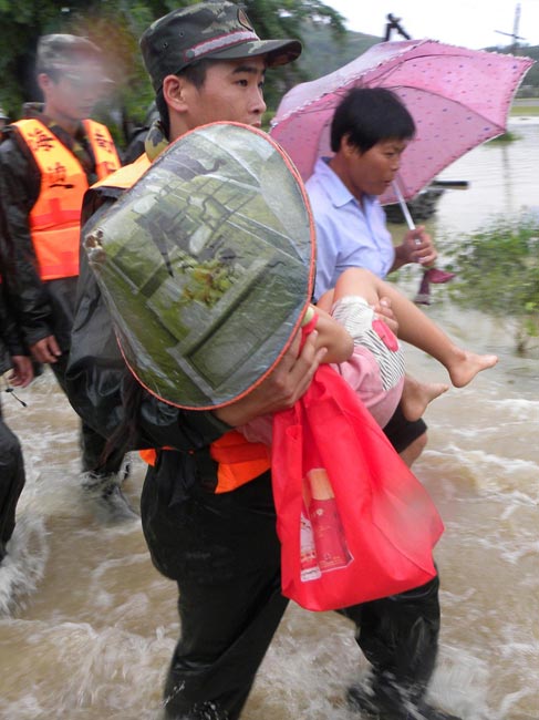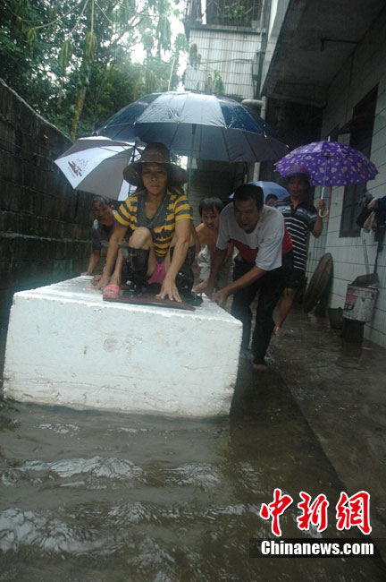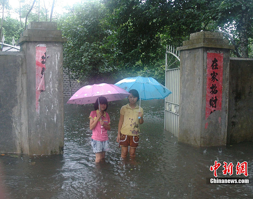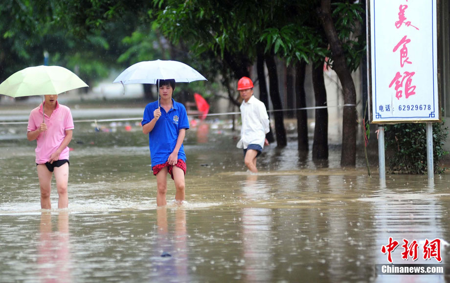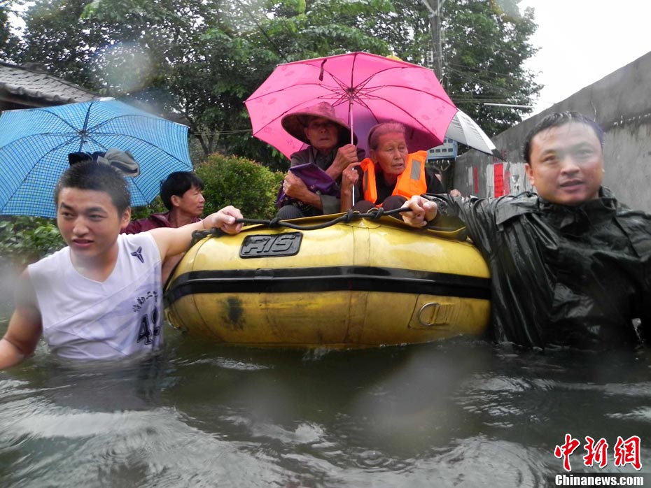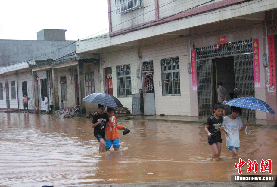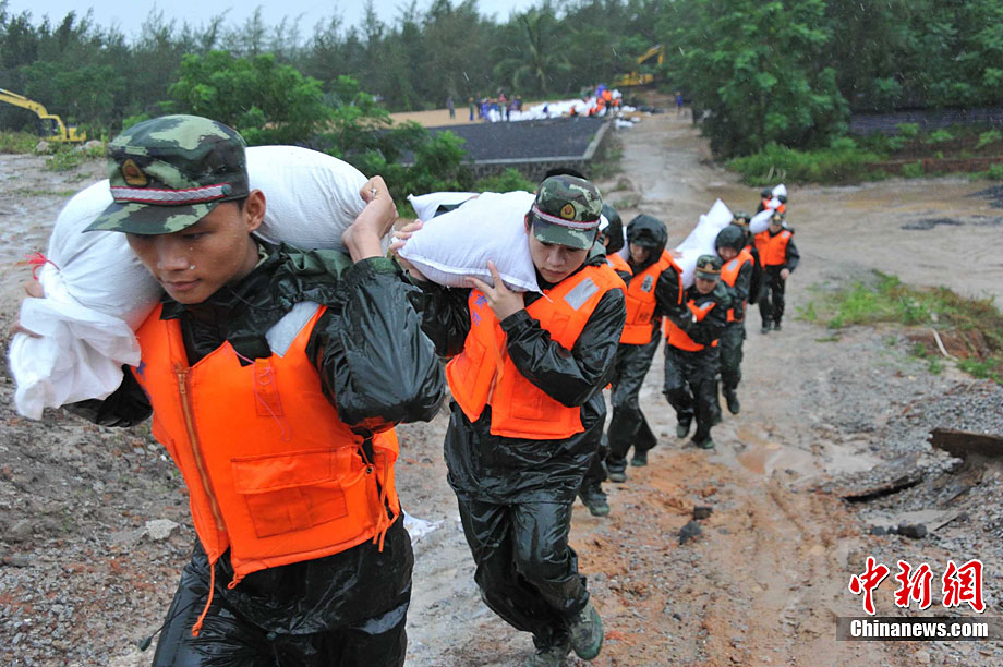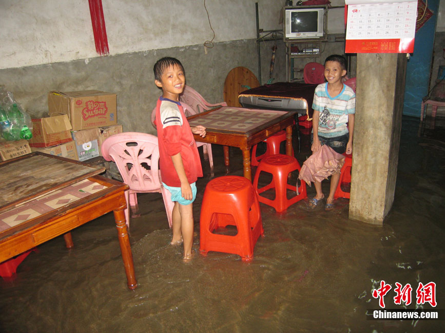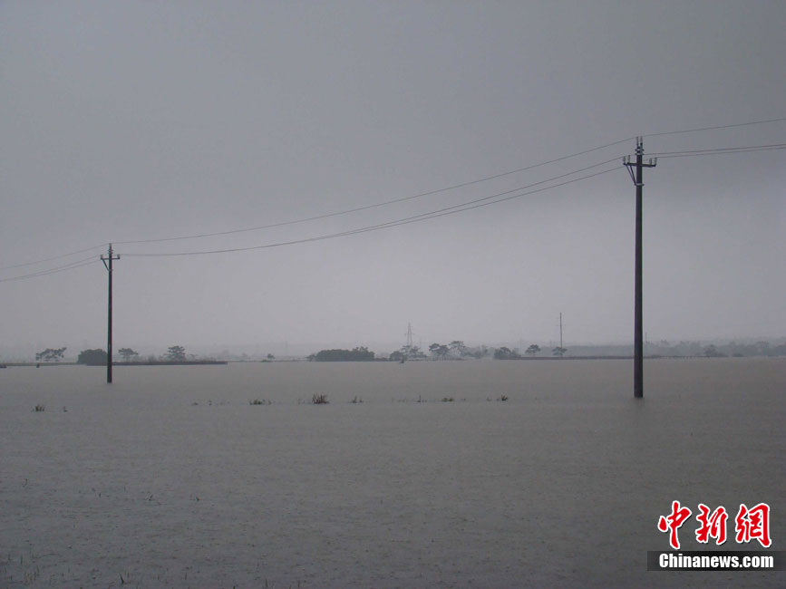 10月16日9时,受持续强降雨影响,琼海市牛路岭水库最高水位达105.16米,超过防洪限制水位105米,牛路岭水库水电站打开7个闸门,以每秒3000立方米流量泄洪到万泉河。当日上午,琼海市政府紧急将万泉河沿岸7乡镇群众紧急转移。中新社发 付美斌 摄