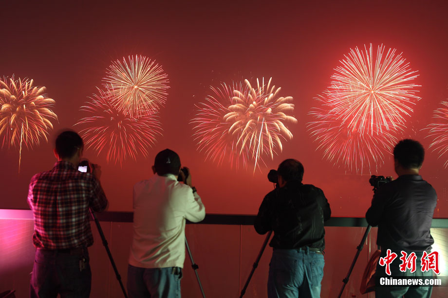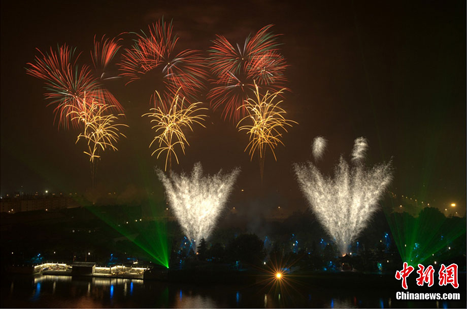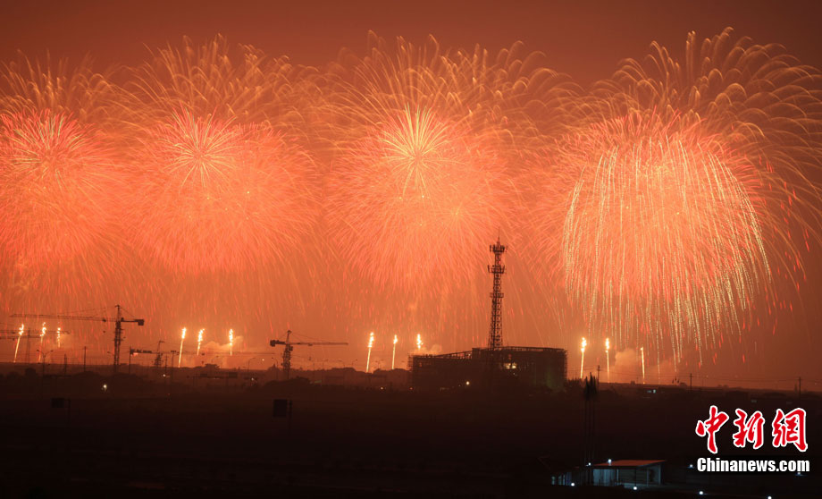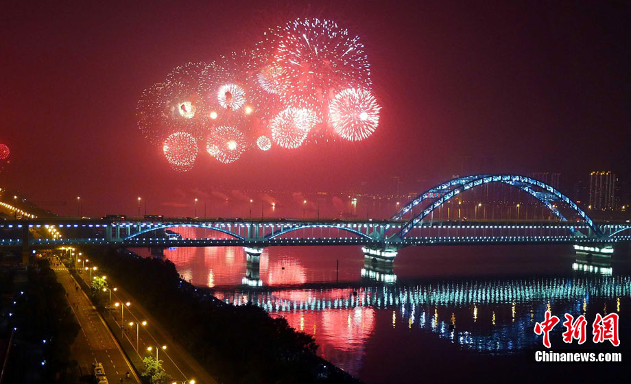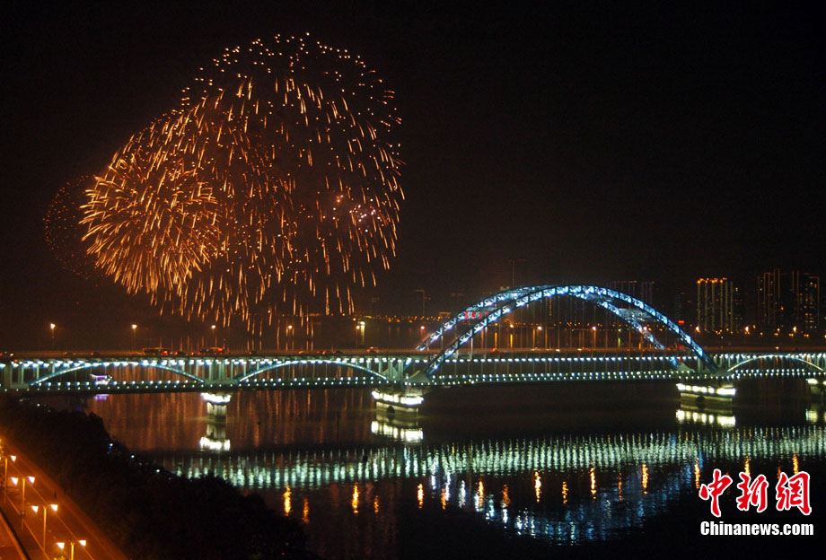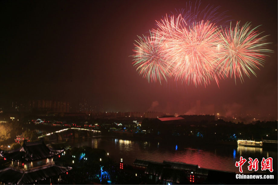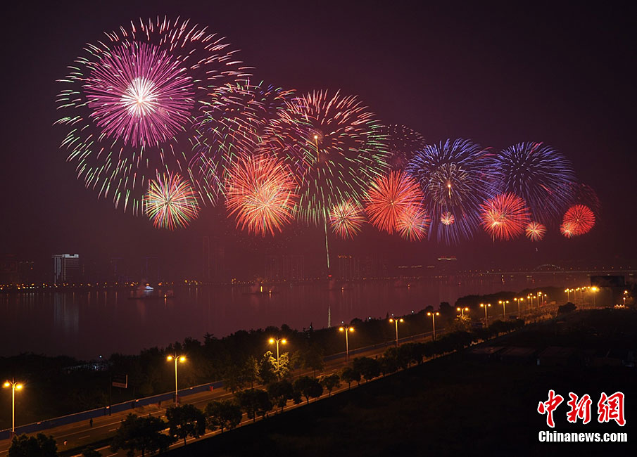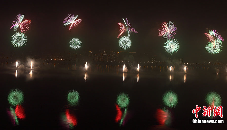10月16日,作为2010杭州国际烟花大会分会场,璀璨旖旎的烟花再次在运河上空绽放。16万发烟花持续近40分钟的燃放再次点亮千年运河的夜空,上演一场梦幻般的视觉盛宴。中新社发 夏毅 摄