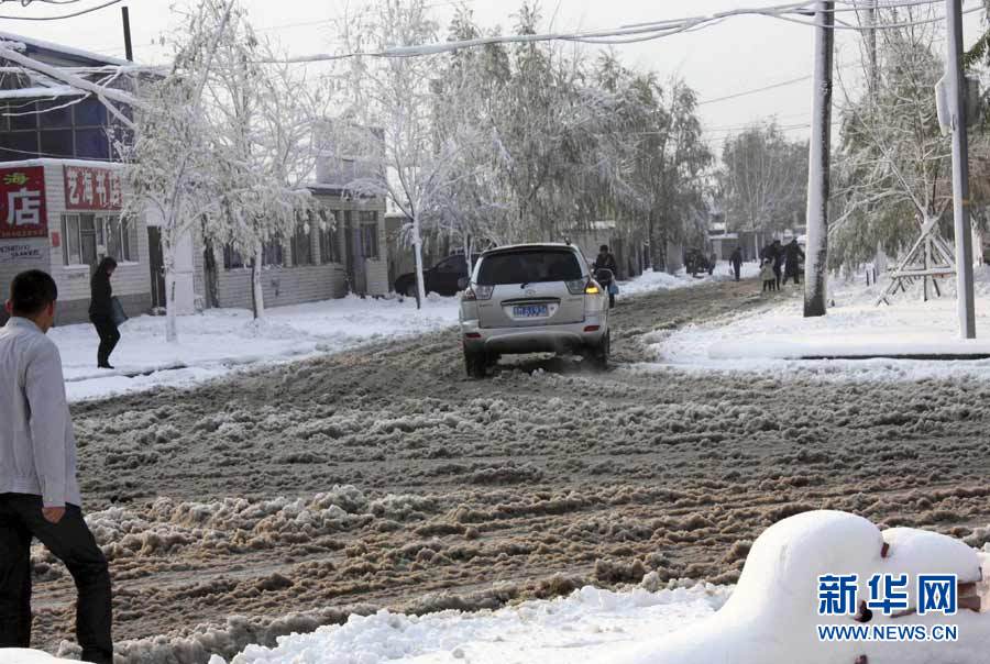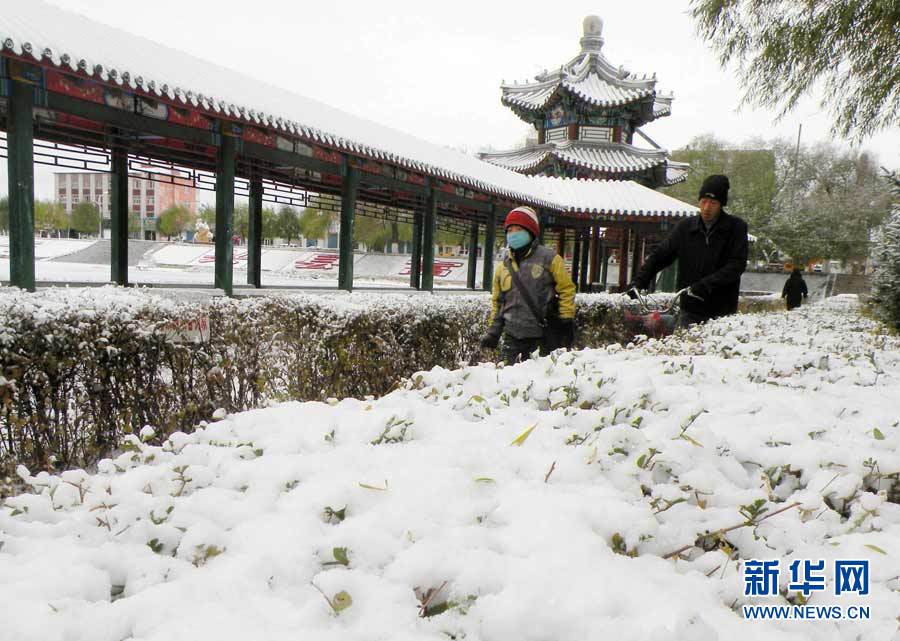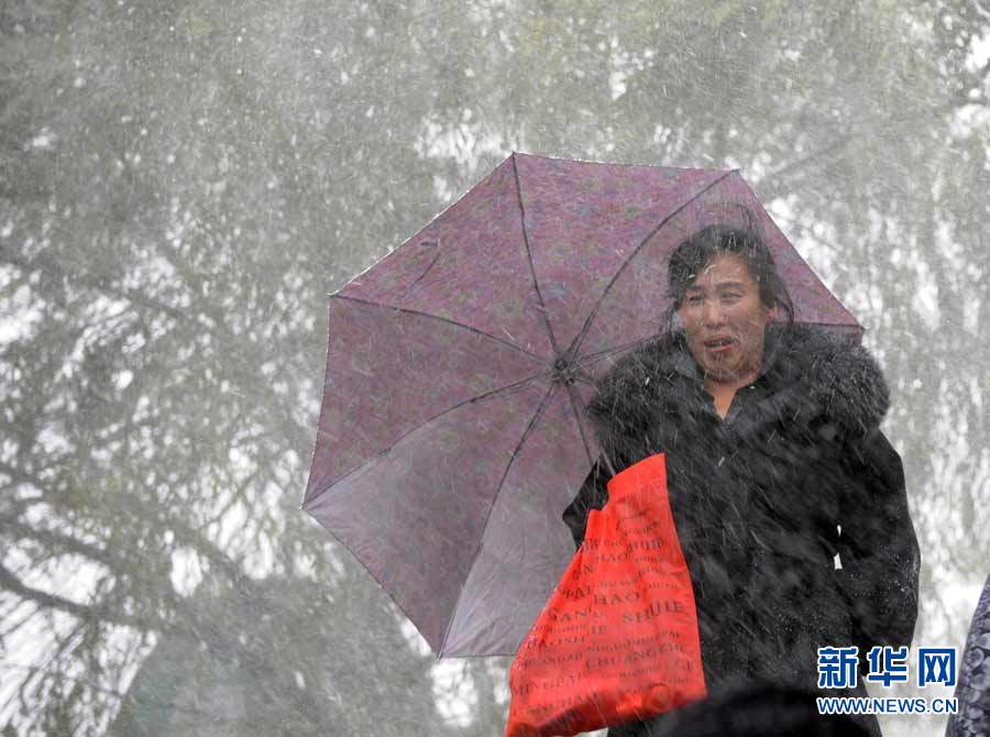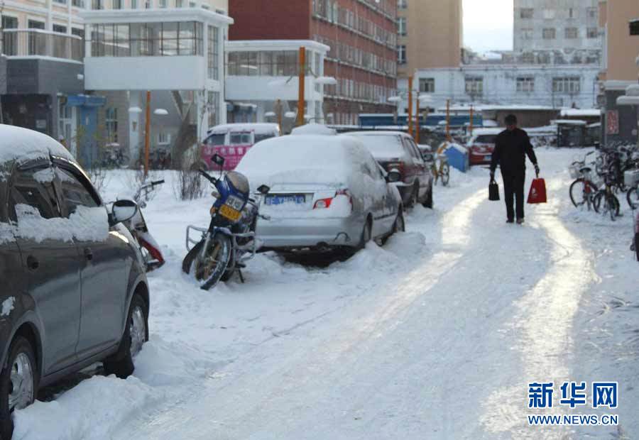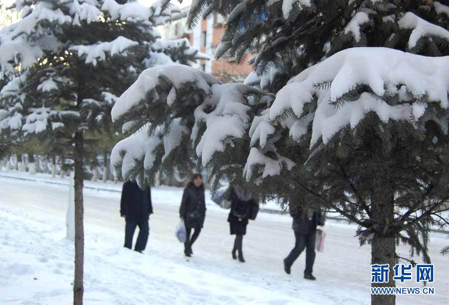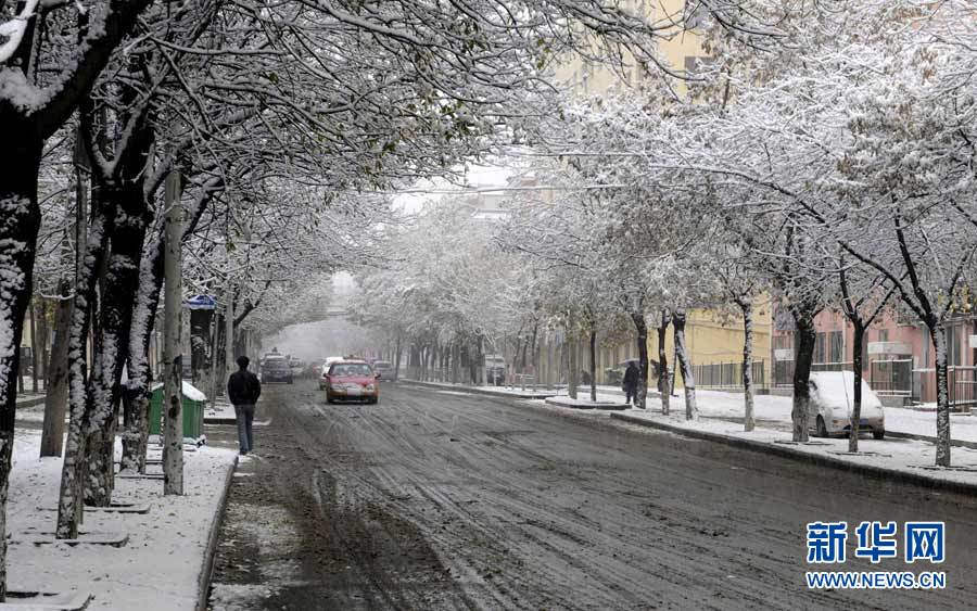 中央气象台近日发布消息,受3股冷空气影响,新疆、西藏、青海、甘肃、黑龙江和内蒙古等9省区入冬在即。图为10月16日,黑龙江省七台河市降雪,市民打着伞冒雪出行。秦存广 摄 图片来源:新华网