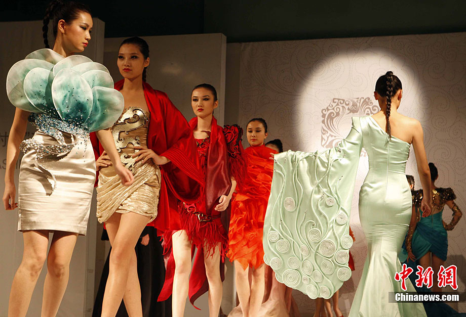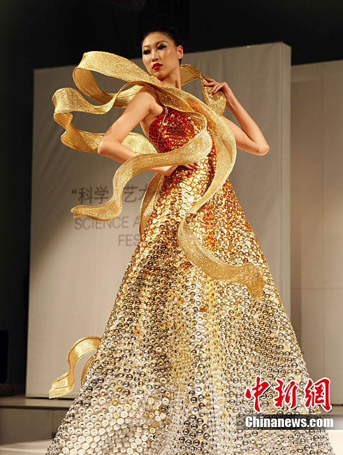 10月19日,北京服装学院第六届“科学·艺术·时尚”节开幕。此次活动将以往的“科学·艺术·服装”正式更名为“科学·艺术·时尚”,融入了更多的时尚色彩,是历届活动中最丰富的一次。其中包括展示中、日、韩传统服饰展和技艺交流;朝鲜时代韩服的美与流行;拼布艺术展;学生创意一条街等,全面体现了该校艺工融合的特色。图为华彩意象—方·圆·盛时尚服装秀展示最新潮流。中新社记者 任海霞 摄