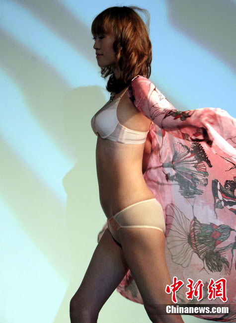 10月21日,中国某女性内衣品牌在上海举行2011春夏新品发布会,率先推出“自在·零负担”内衣,让女性在即将到来的兔年中体验“身体不受束缚,心灵自由放逸”的逍遥境界。 中新社记者 潘索菲 摄