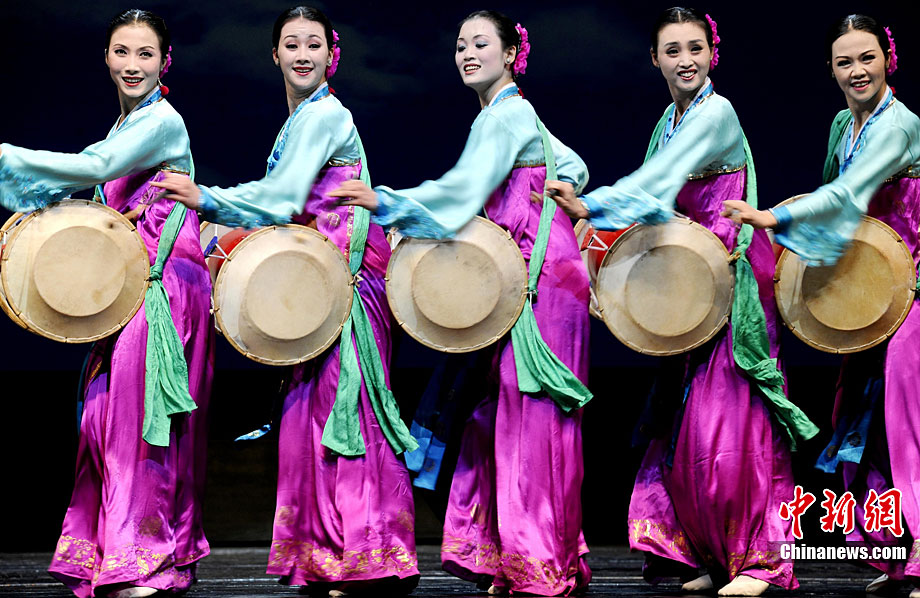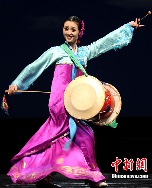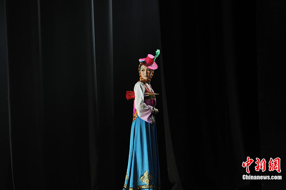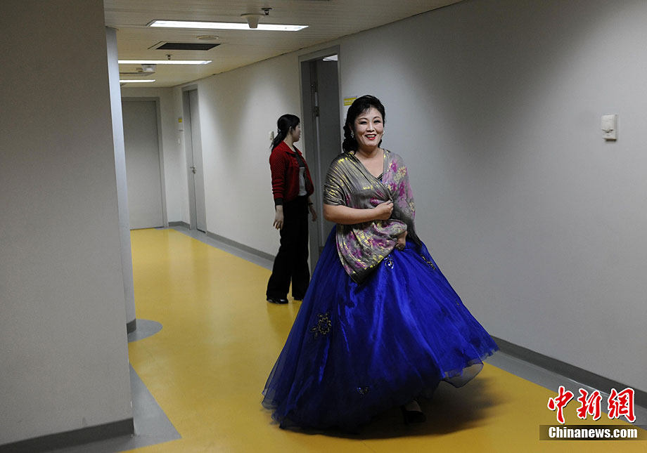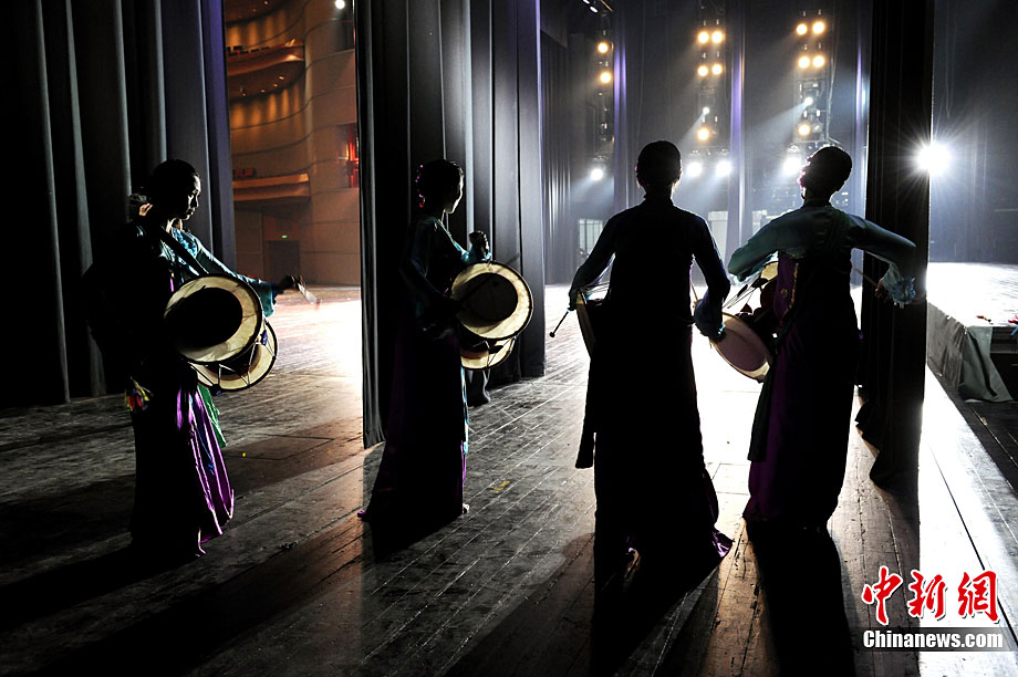 10月22日晚,朝鲜平壤艺术团在国家大剧院进行彩排。10月23至24日,朝鲜平壤艺术团将在北京国家大剧院歌剧院上演歌舞晚会《怒放的金达莱》。此次来访的朝鲜平壤艺术团,是朝鲜政府专门为参加上海世博会朝鲜馆日组建的表演团体,该团成员来自朝鲜最重要的三大艺术团体:万寿台艺术团、血海艺术团和朝鲜民族国立艺术团,参演人员荟萃了朝鲜最优秀的艺术家。演员们将身着独具特色的民族服饰,表演《长鼓舞》、《拾贝姑娘》、《铃铛舞》、《三人舞》等传统舞蹈。中新社记者 刘震 摄