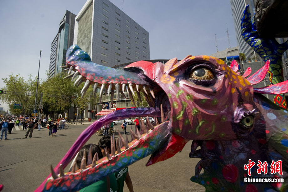 当地时间10月23日,墨西哥首都墨西哥城,人们举行名为“Alebrijes”的怪兽大游行。Alebrijes是典型的墨西哥瓦哈卡州手工艺品。佩德罗·利纳雷斯在1936年创作出名为Alebrije的工艺品,它以纸浆制成,最大的特点就是它是不存在或人们想象的动物。