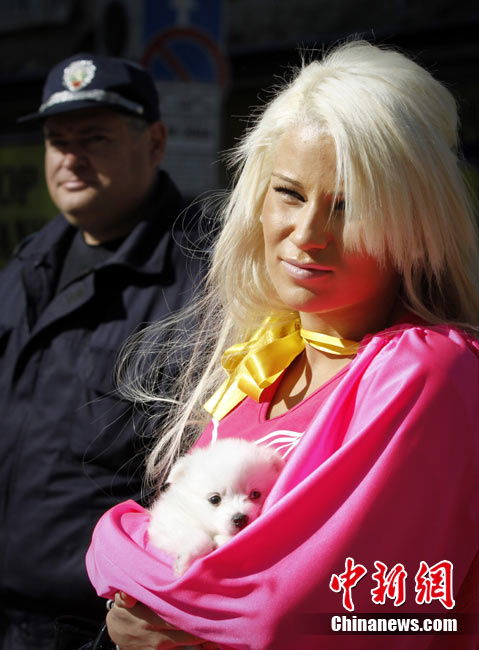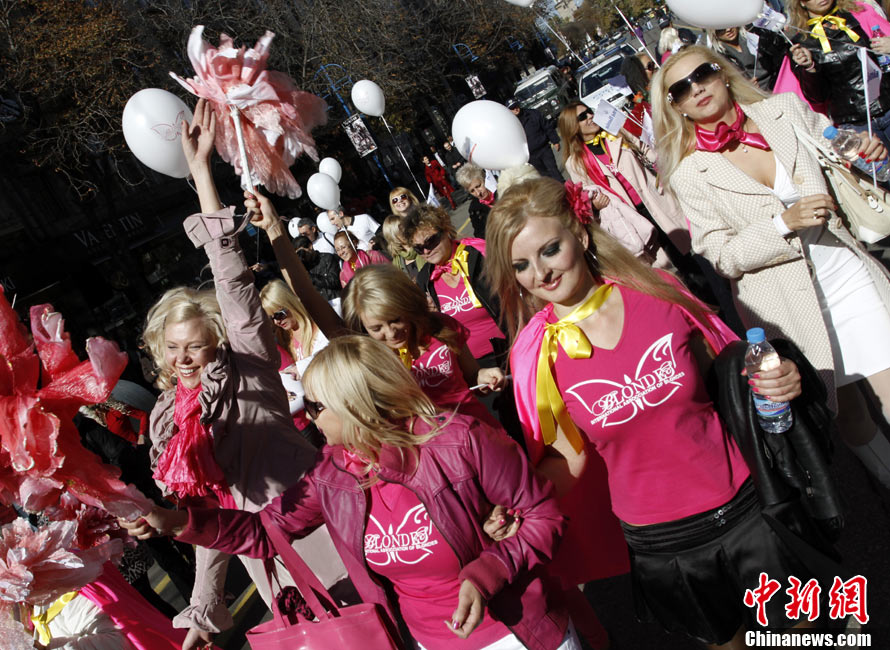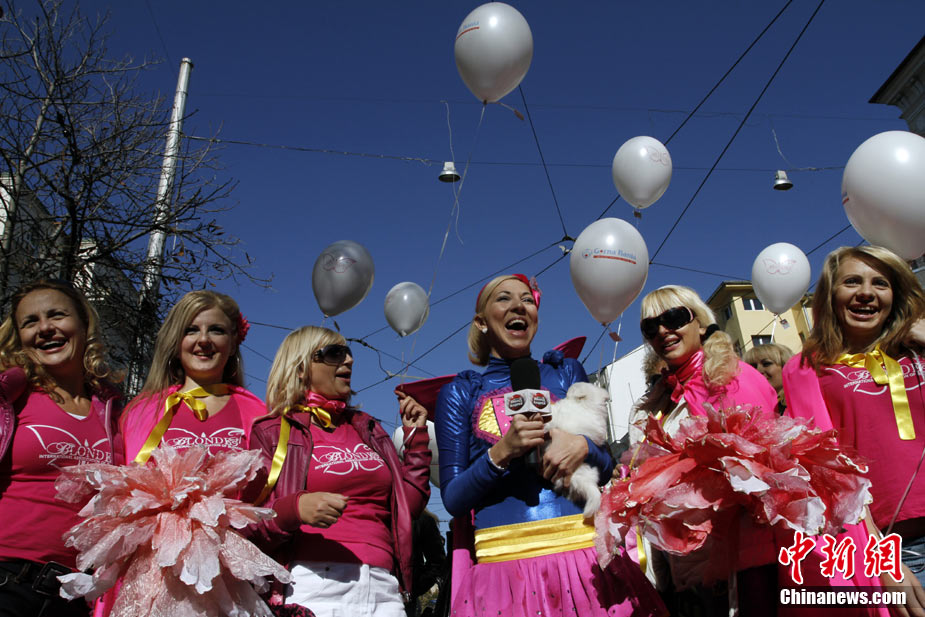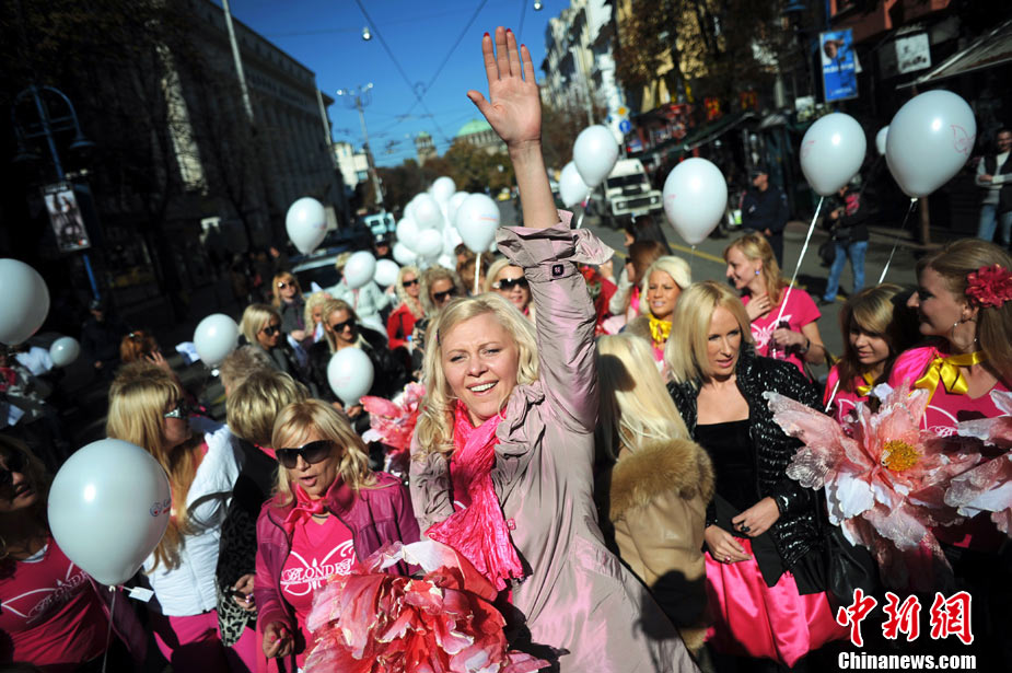 近日,在保加利亚首都索非亚举行了金发女郎大游行,众多美女在街头大秀妩媚身材。