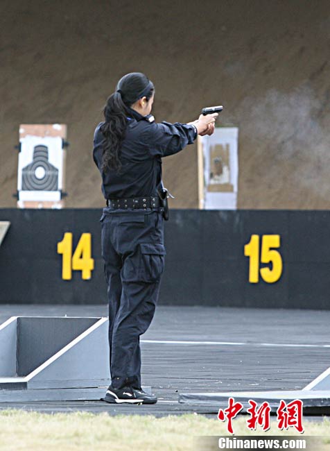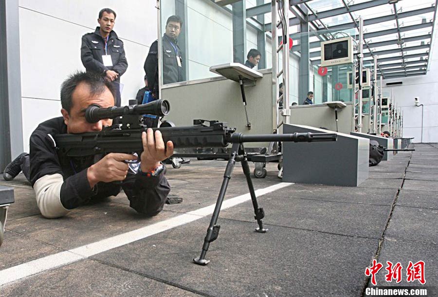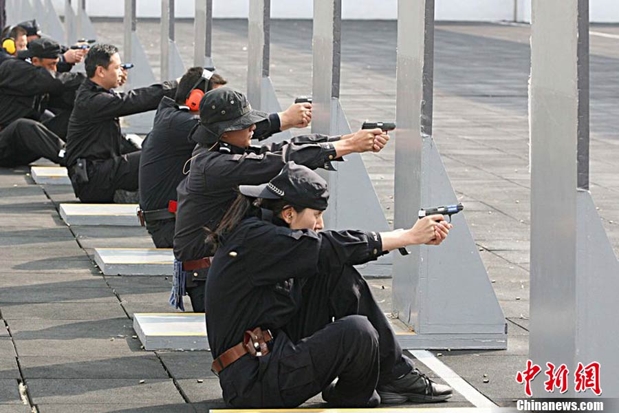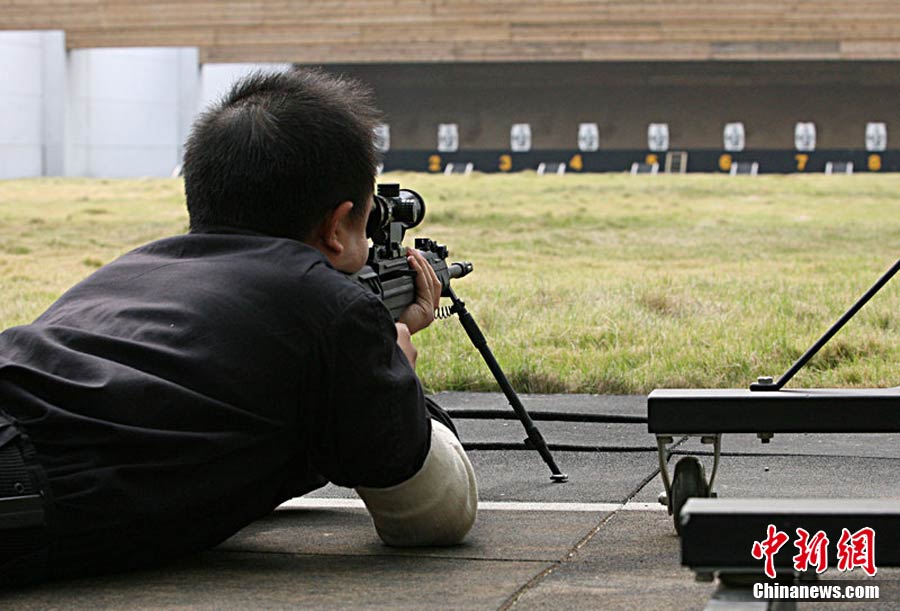 10月26日上午,2010年第22届全国公安系统实战应用射击比赛在武汉打响,来自全国各省市自治区和新疆生产建设兵团公安厅(局)的射击高手们将在未来3天的比赛中一决高下,争夺团体冠军的最高荣誉。图为选手们在进行实弹射击。石一 摄 图片来源:CFP视觉中国