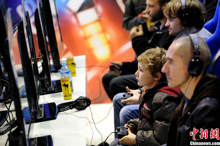 10月27日,在法国巴黎举行的“电子游戏周”上,众多电玩爱好者在体验大厅里尽情享受游戏的世界。