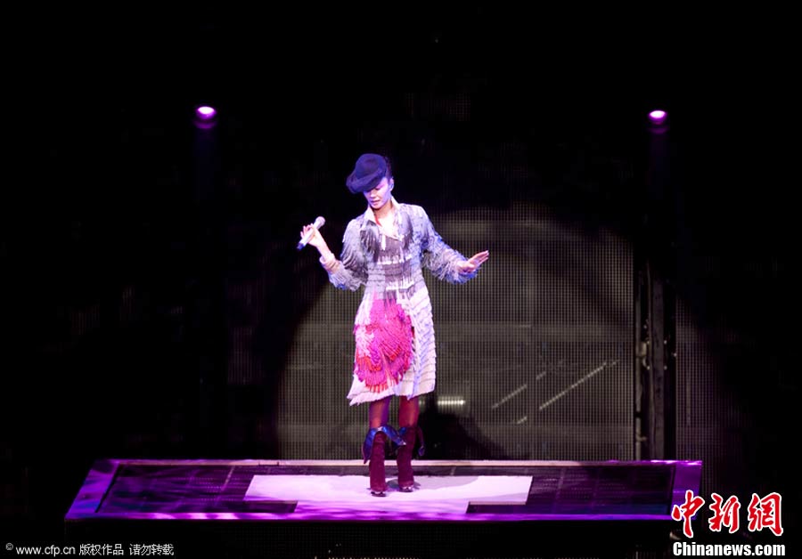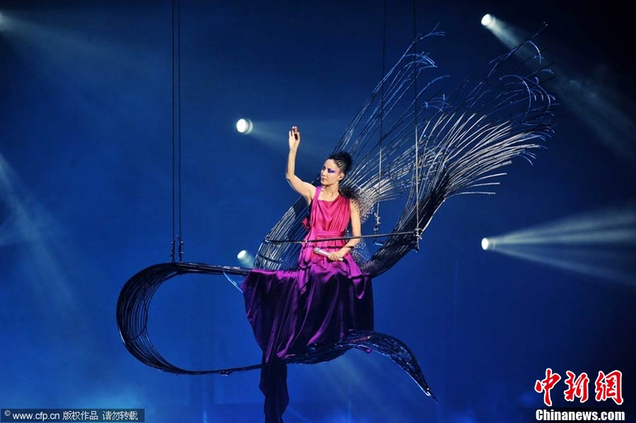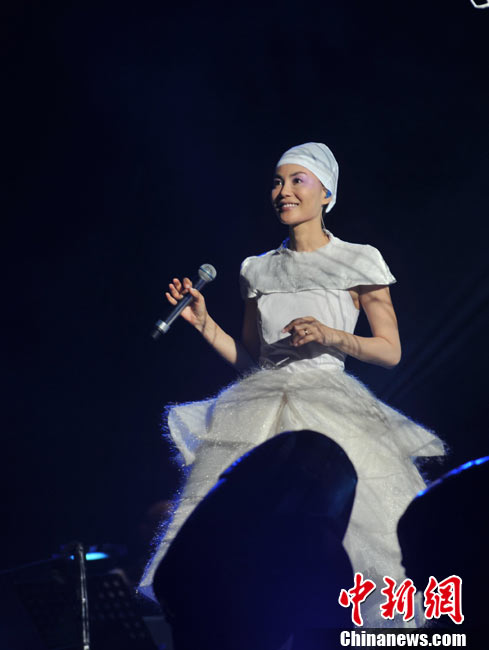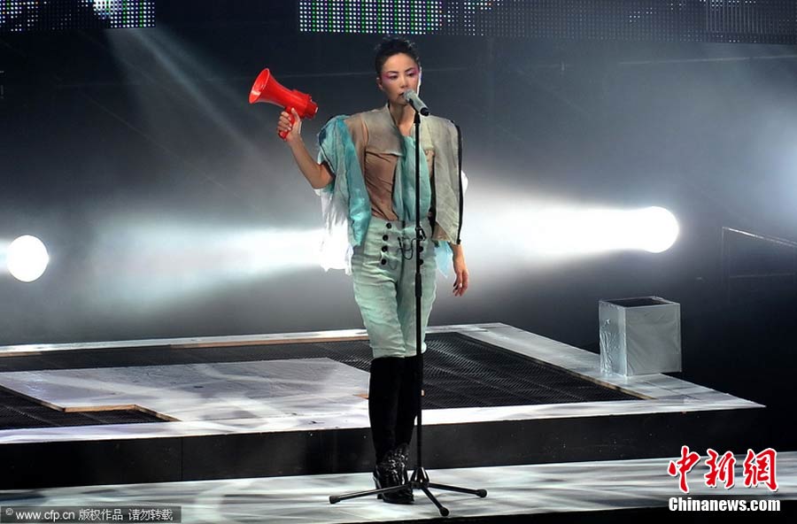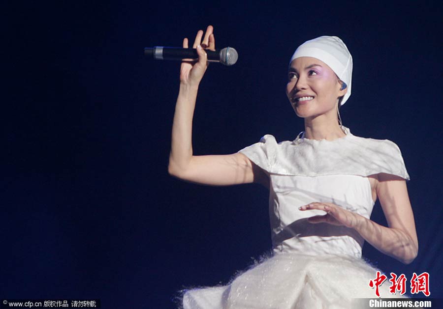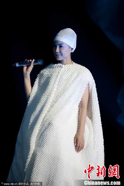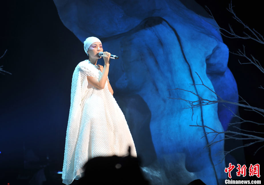10月29日晚,暌违六年,华语乐坛天后级人物王菲在自己的家乡——北京,再次开嗓,为歌迷奉献出一场精彩绝伦的演唱会。整场演出,王菲在造型上十分抢眼,不论最开始的一身雪白,脱去外套后的蓬蓬裙显得清新脱俗,或是中间段的摩登女郎装扮、骑士装、拖地长礼服,都令她展现不同韵味。图片来源:CFP视觉中国