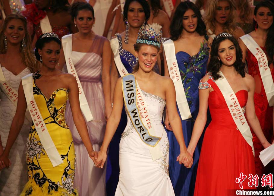 10月30日晚,第60届世界小姐总决赛在三亚“美丽之冠”决出前三甲,美国小姐Alexandria MILLS 获得冠军,博茨瓦纳小姐Emma Wareus 和委内瑞拉小姐Adriana VASINI分获亚军和季军。中国小姐唐潇入围前五名。