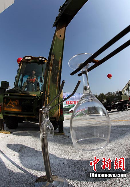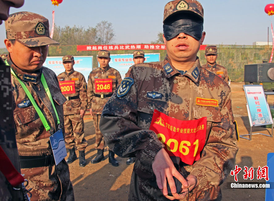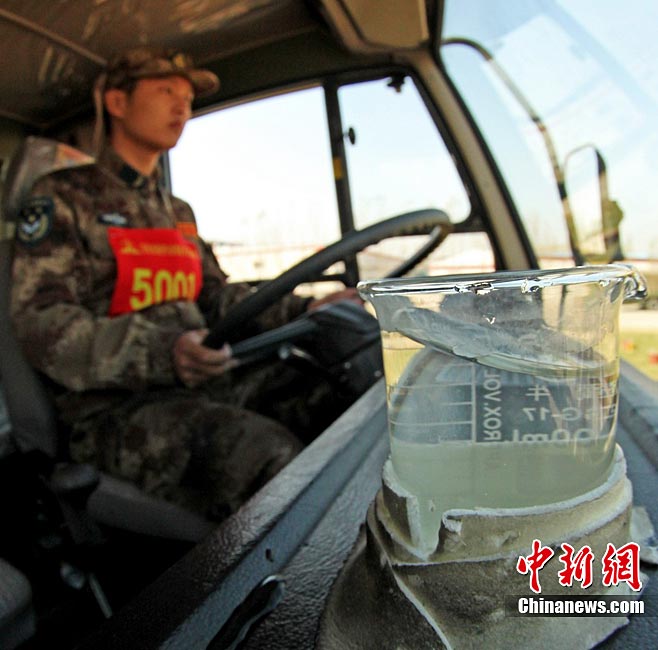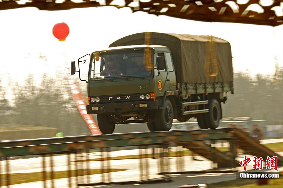 10月31日,空军成立61年来规模最大的后勤专业技能大比武在沈阳落幕。在3天的时间里,784名后勤精英在49个课目中进行比拼。参加这次大比武的人员来自空军直属及所辖7个军区空军、空降兵部队的各级后勤系统。今年3月以来,空军以《空军后勤训练和考核大纲》等为基本依据,在空军后勤现有的军需、油料、卫生、军事交通、机场营房等7个专业中逐级进行全员选拔。七大专业既包括轻武器分解结合与实弹射击、炊事、车辆驾驶等军队通用训练课目,也包括输油管线抢修、机场抢修、猎鹰驱鸟和猎枪打靶等具有浓厚空军色彩的课目。图为驾驶员选手比试通过高架桥。谭超 摄 图片来源:CNSPHOTO