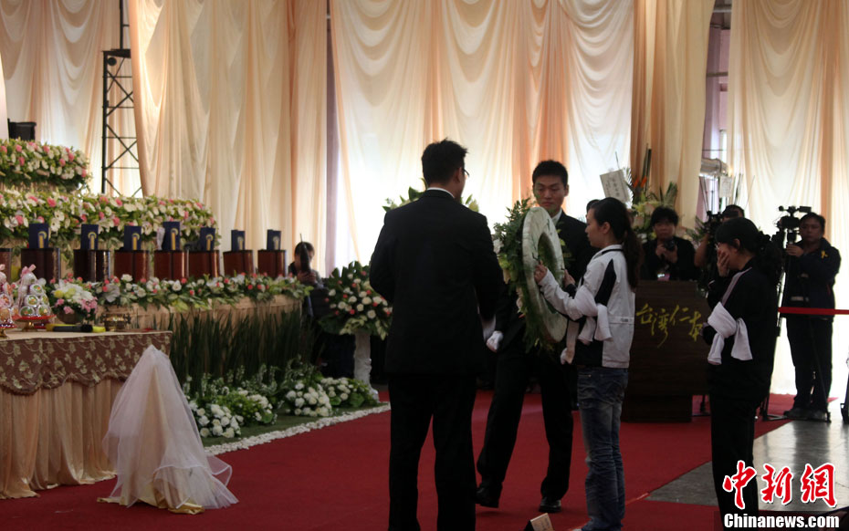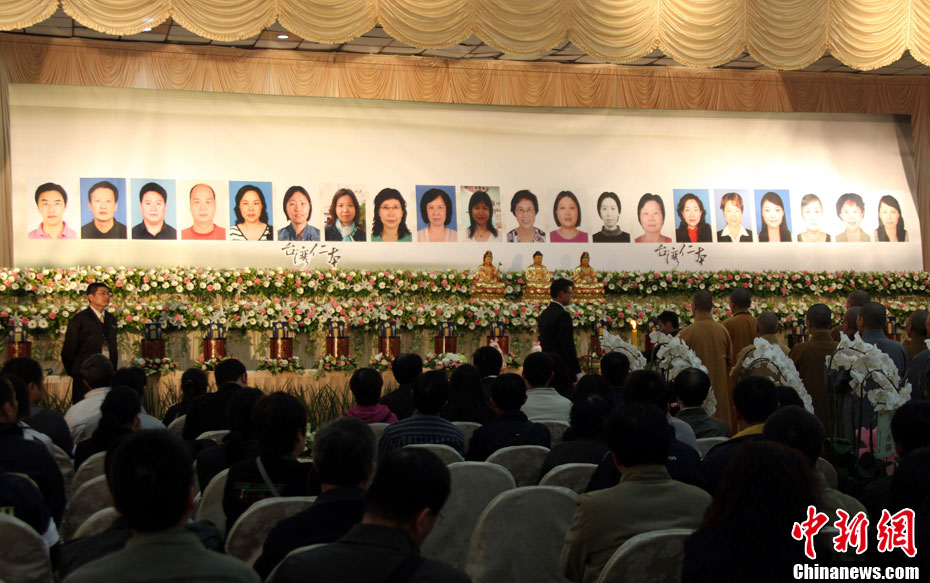 “1121苏花公路大陆旅客罹难者追悼会”11月4日下午在台北市第二殡仪馆举行。图为追悼会现场。中新社发 王健 摄