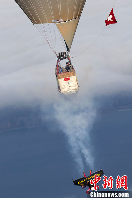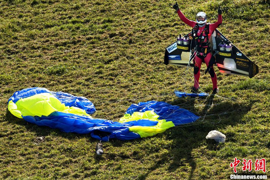 瑞士“火箭人”上演空中筋斗特技