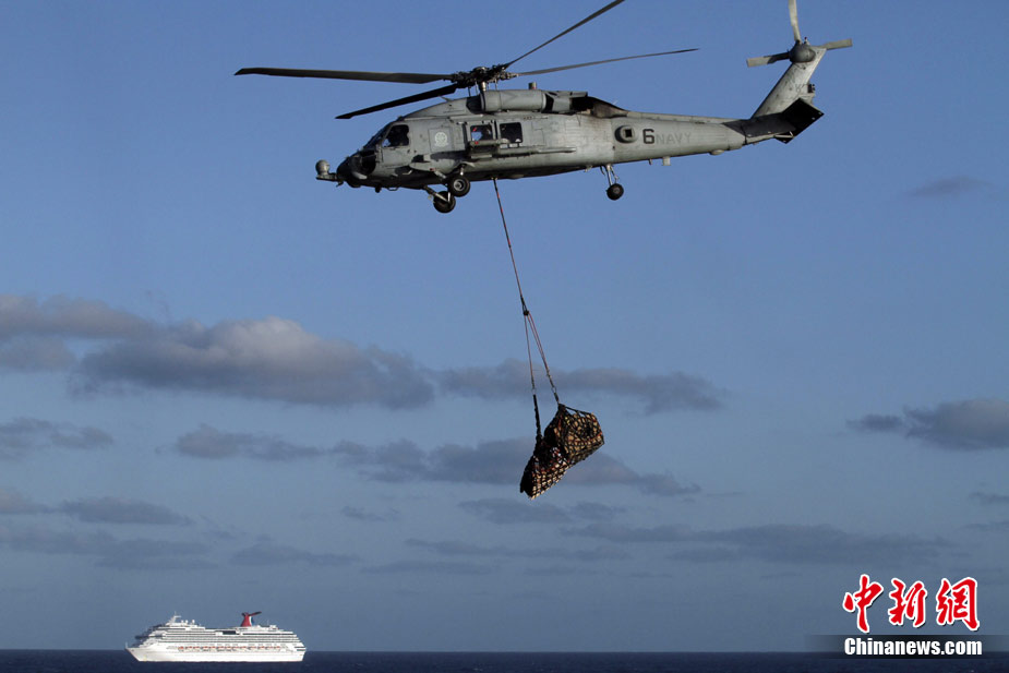 11月9日,“光辉嘉年华”号游轮停泊在墨西哥圣迭戈西南附近海域。 8日,这艘游轮机舱起火在墨西哥西部海域搁浅,近4500名乘客和船员受困。美国海军“罗纳德·里根”号已在事发海域协助救援。