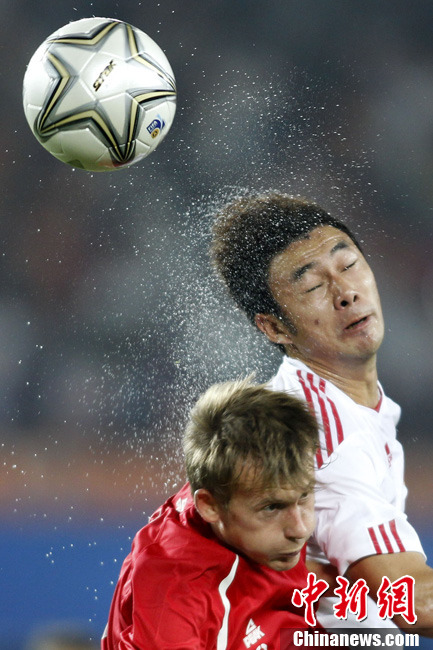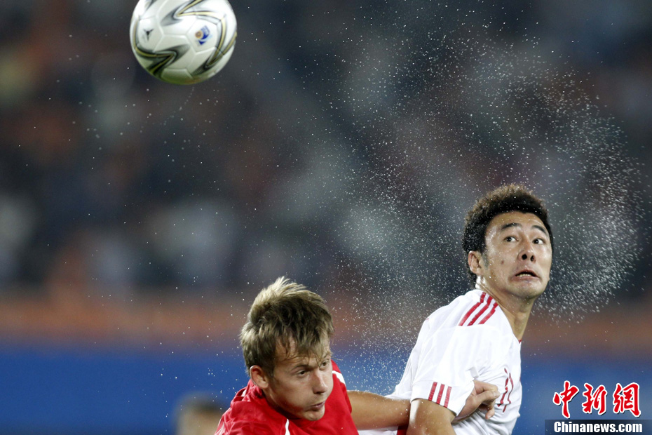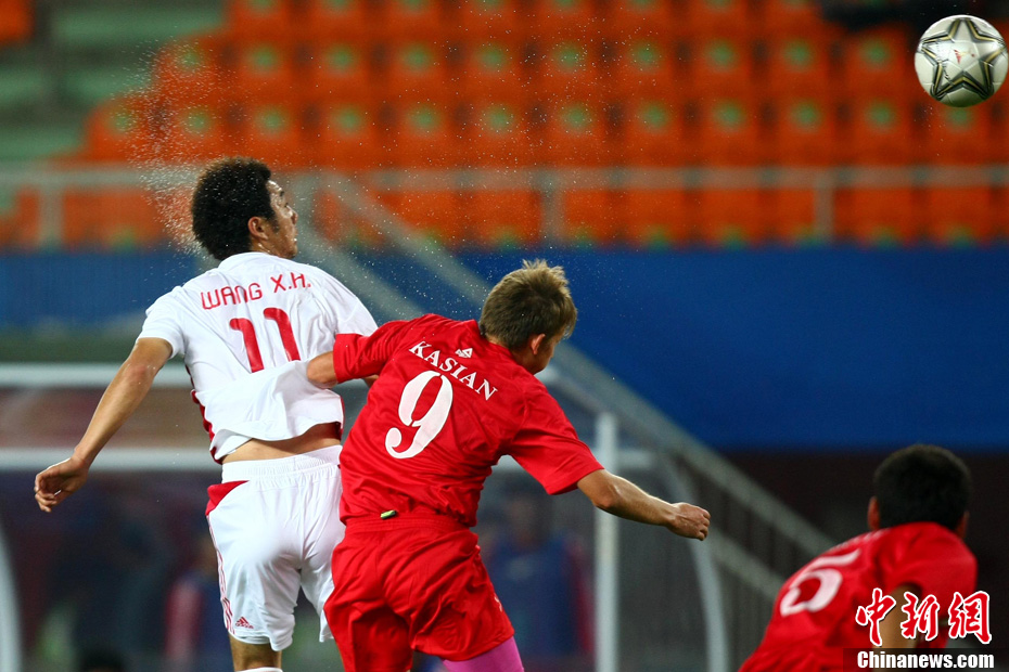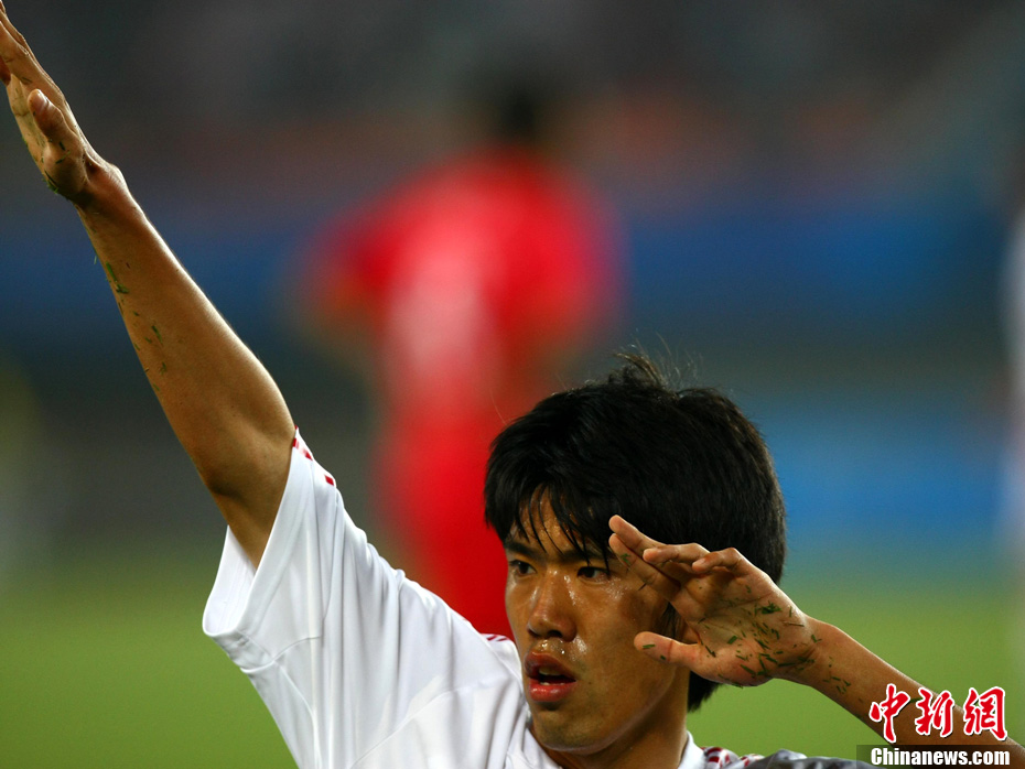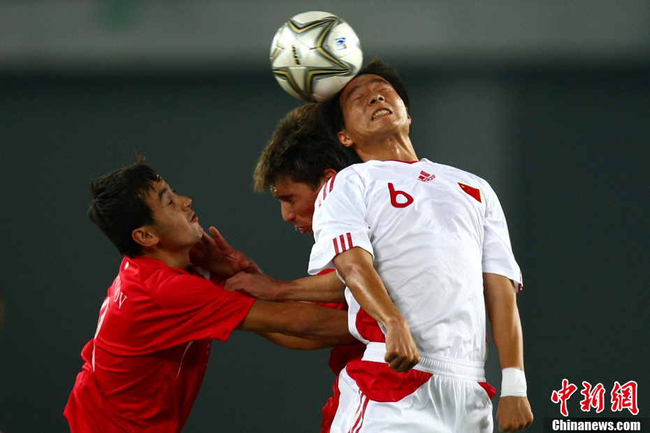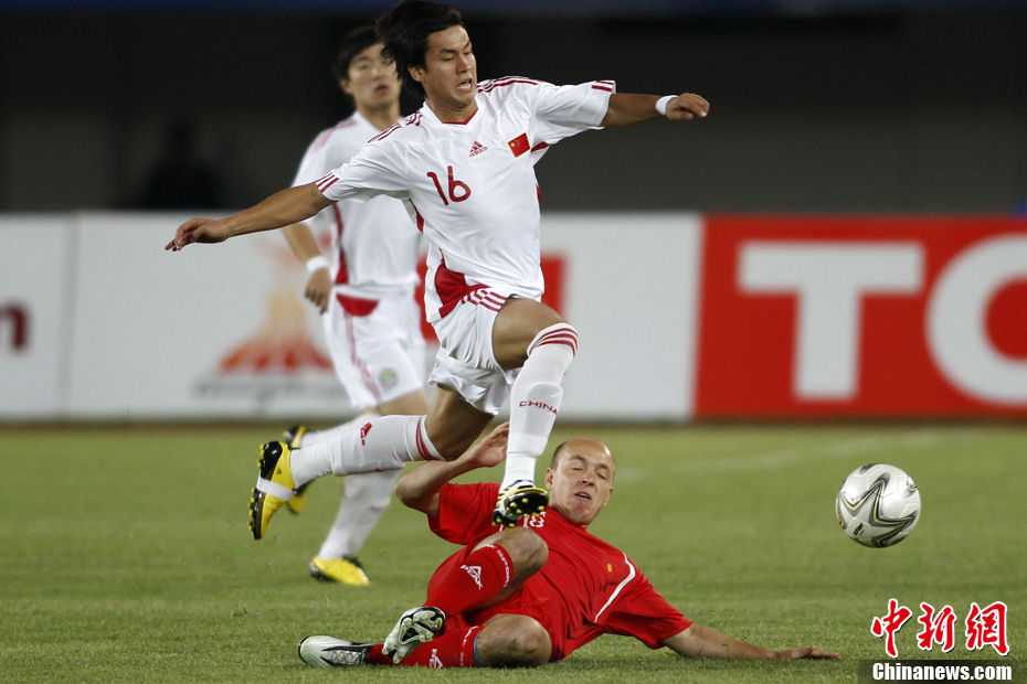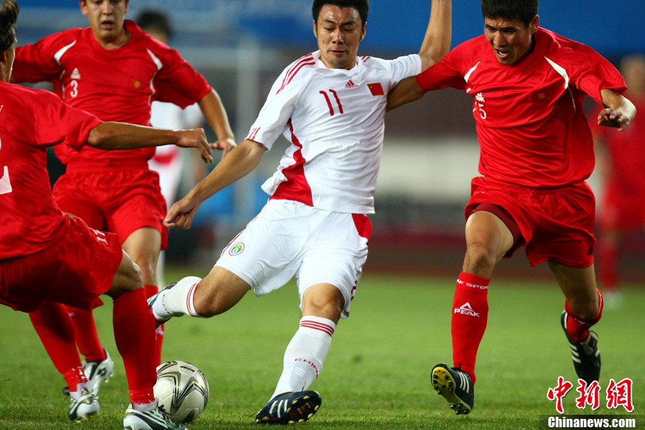 11月10日晚,广州亚运会男子足球小组赛A组第19场中国与吉尔吉斯斯坦的比赛在广州天河体育场进行,最终中国队2:1战胜吉尔吉斯斯坦队。中新社记者 富田 摄