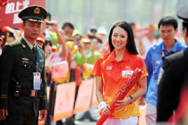 章子怡在广州大学城传递亚运圣火