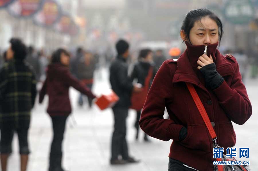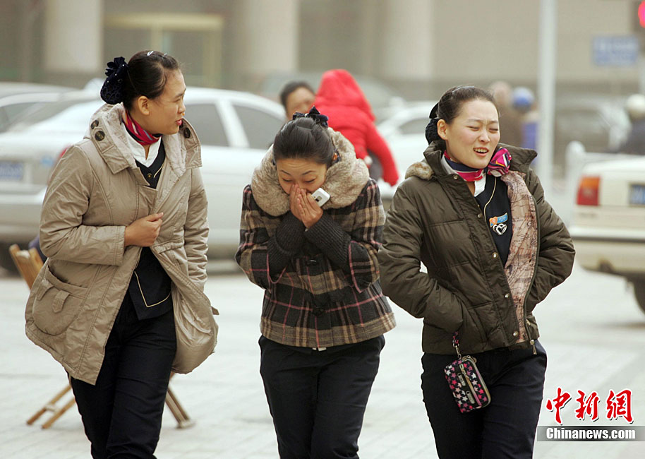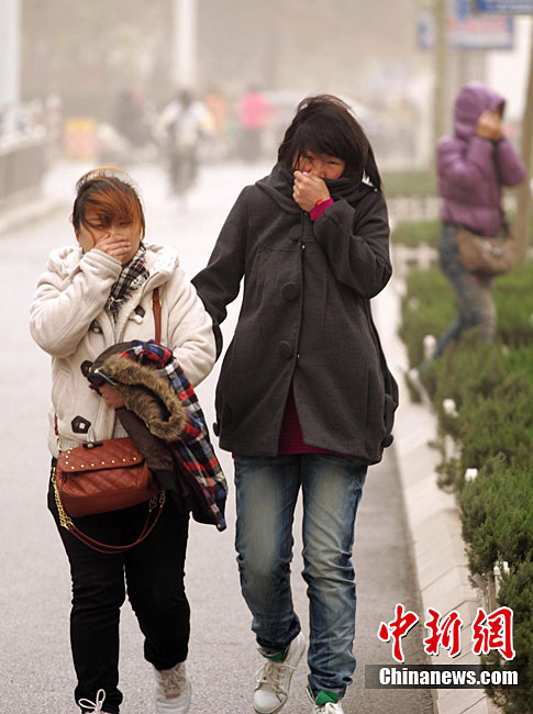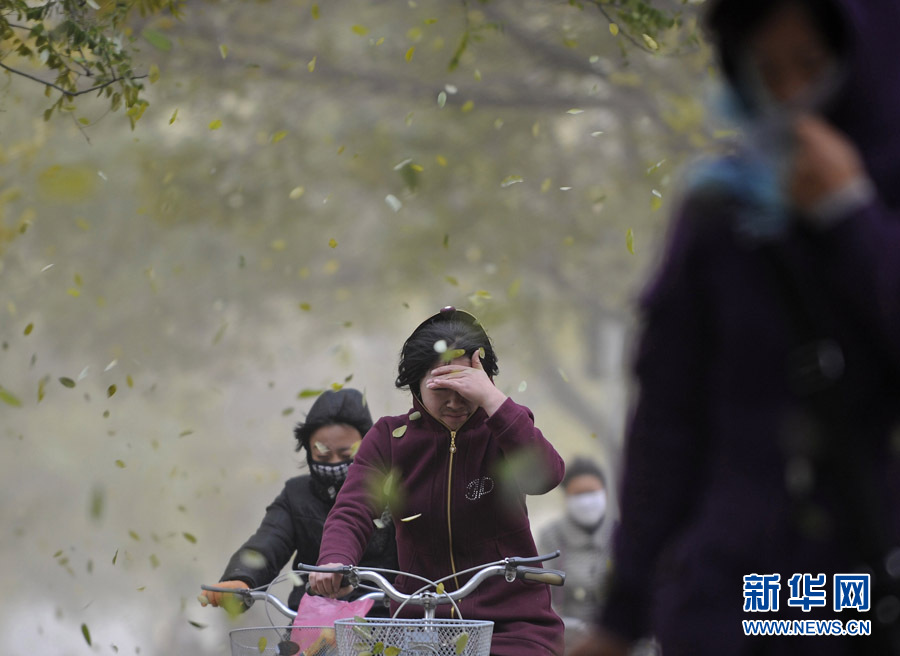 11月11日,潍坊市民在黄沙笼罩中艰难出行。当日,一股从西北来的冷空气开始影响山东省,同时山东省气象台发布了海上大风黄色预警,西北风裹着沙尘吹在脸上着实让人难受。图片来源:CNSPHOTO 张驰 摄
