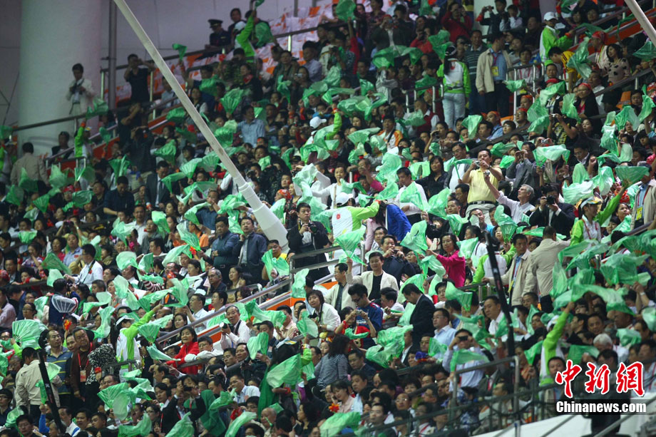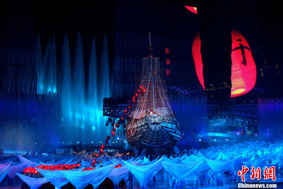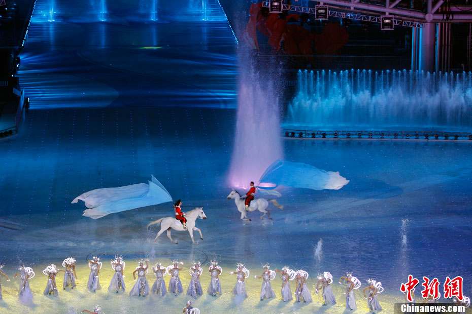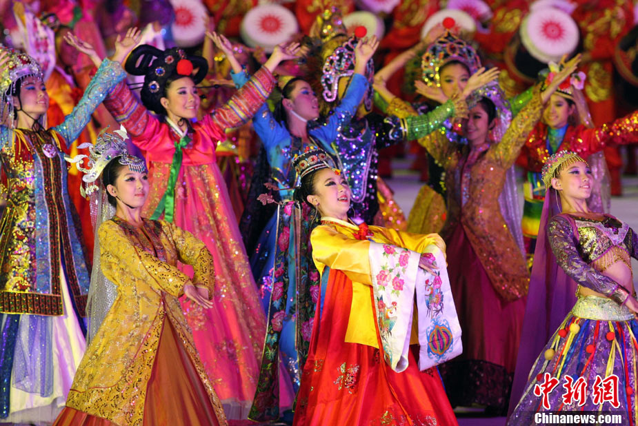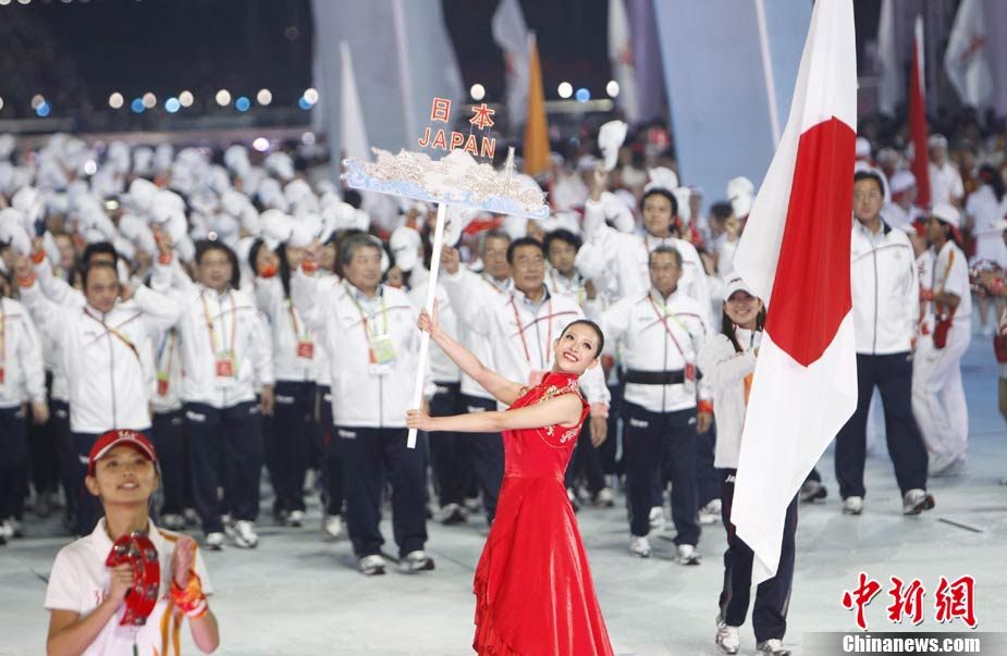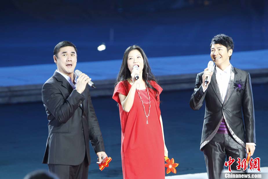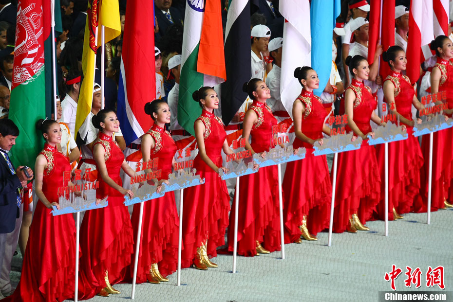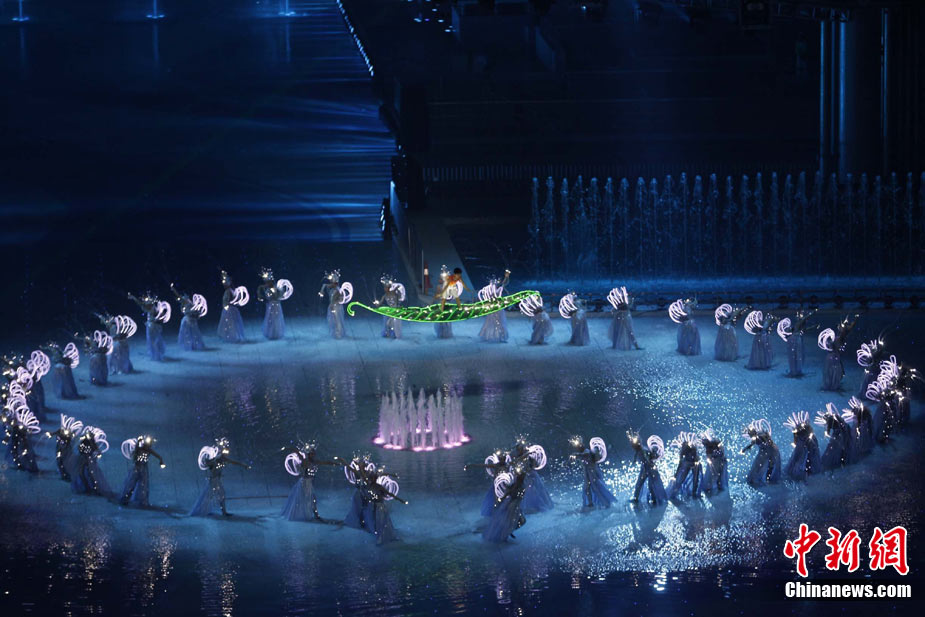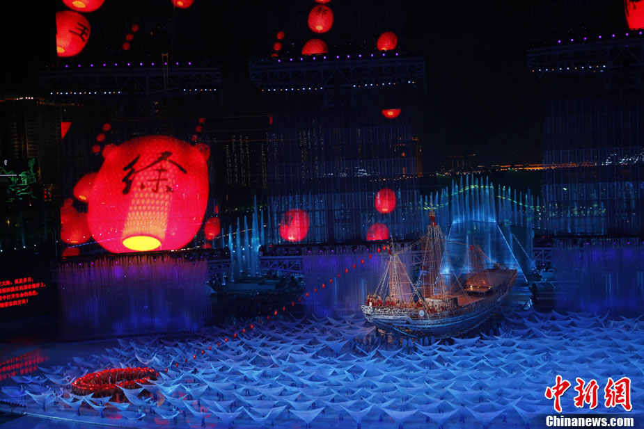 11月12日晚,广州亚运会开幕。图为亚运圣火主火炬点燃。中新社记者 富田 摄