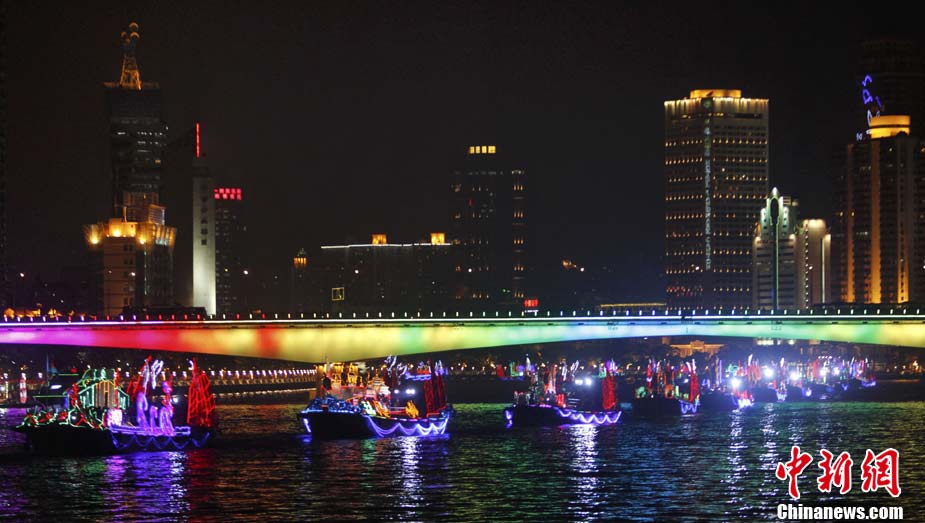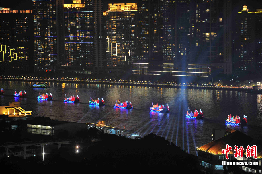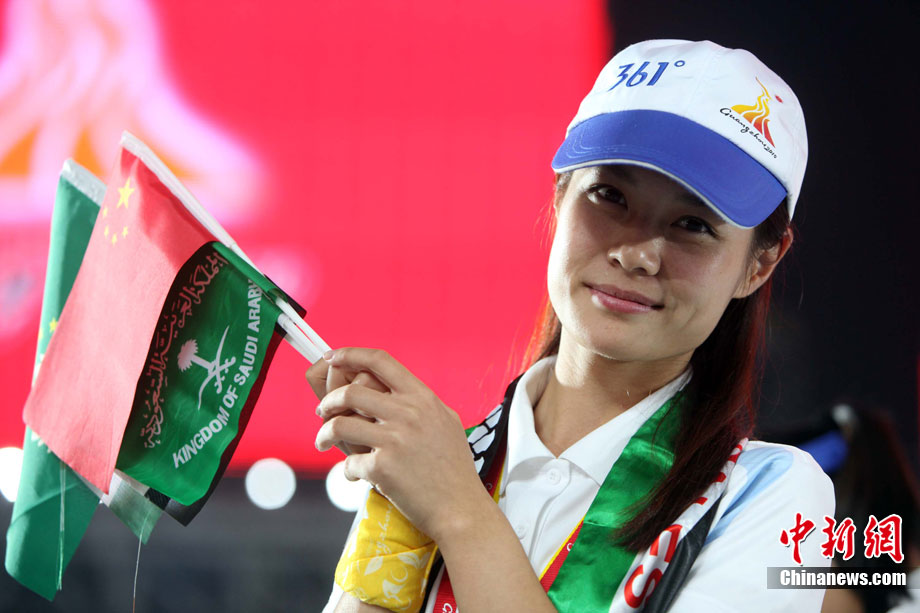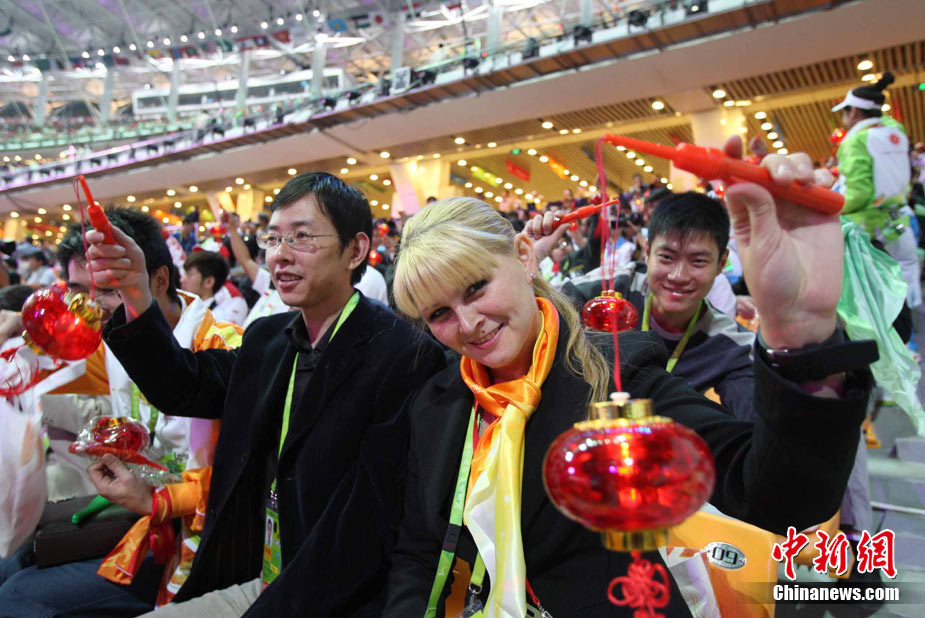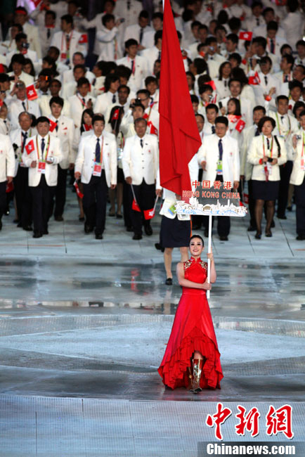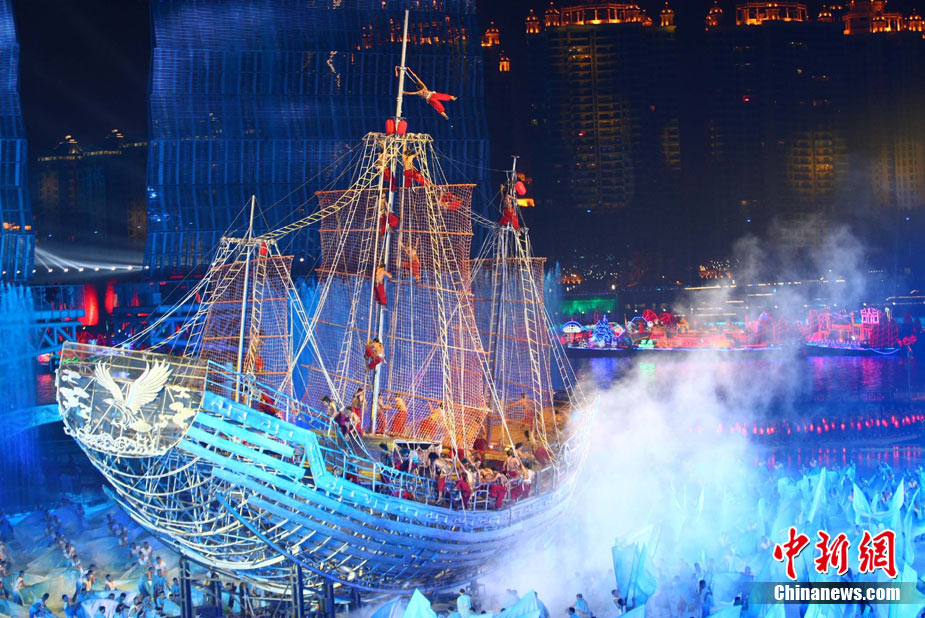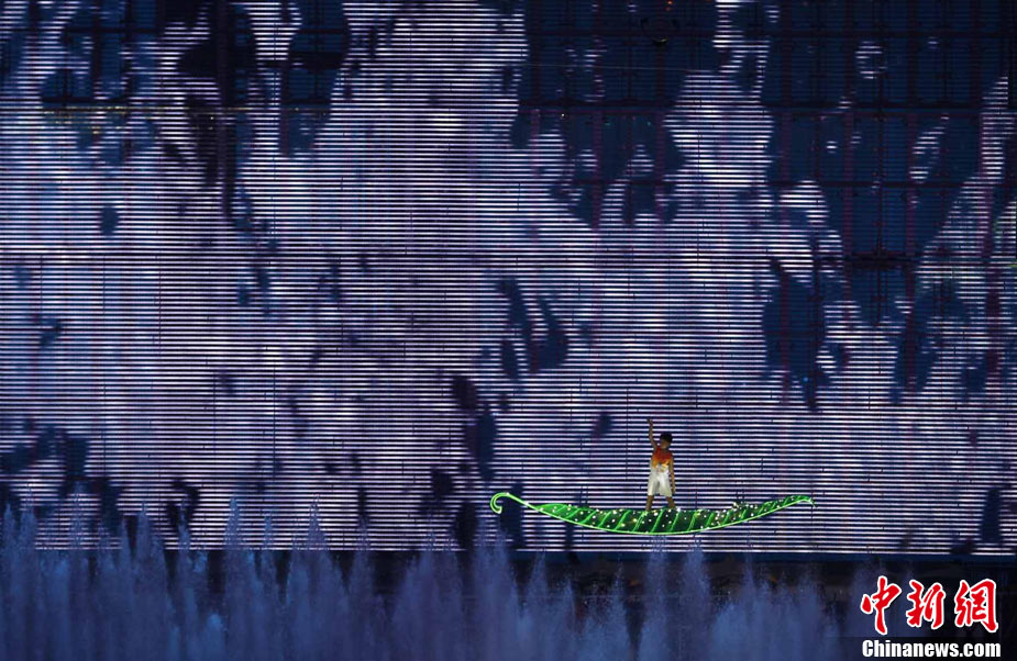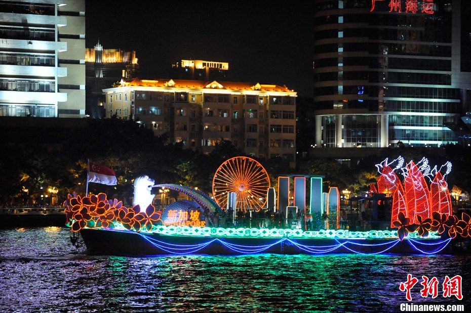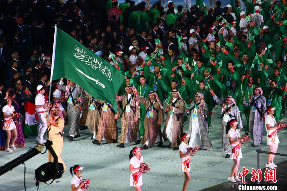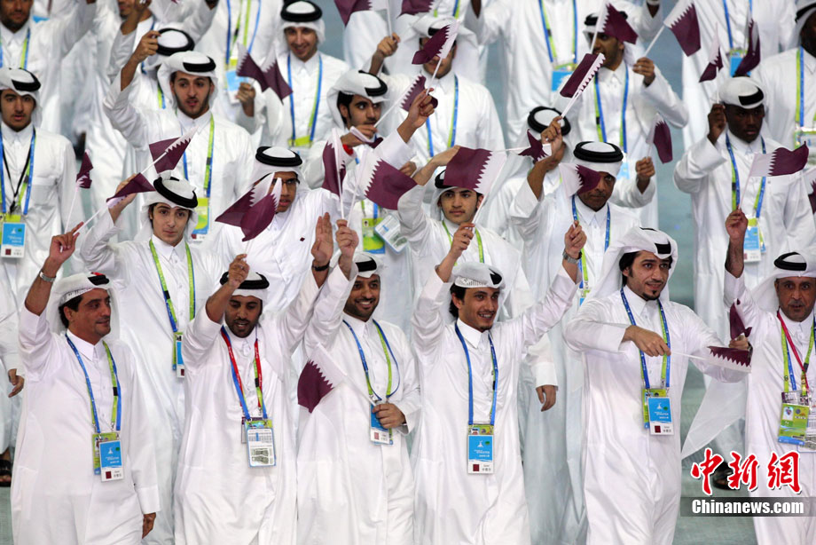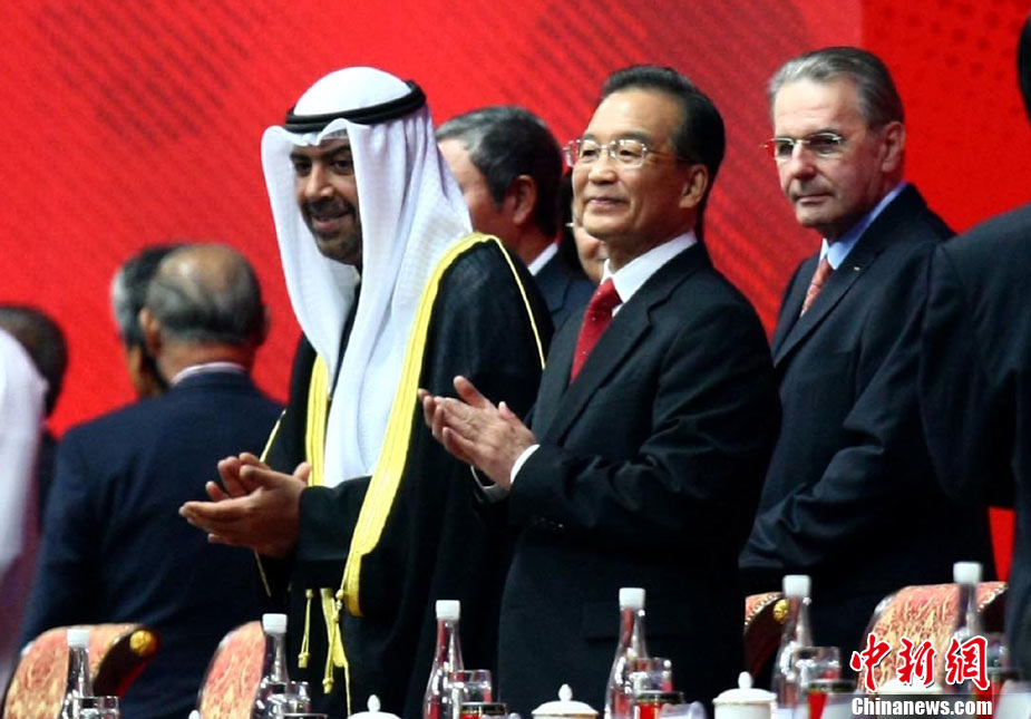 11月12日晚,广州亚运会开幕。图为亚运圣火主火炬点燃。中新社记者 富田 摄