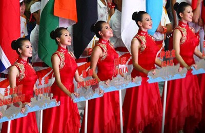 11月13日,第16届亚运会结束了女子铁人三项决赛的争夺,世界排名第9位的组莉真理子力压其他选手,以2小时5分钟42秒40率先冲过终点,为日本队夺得第一比赛日的首枚金牌。中新社记者 富田 摄