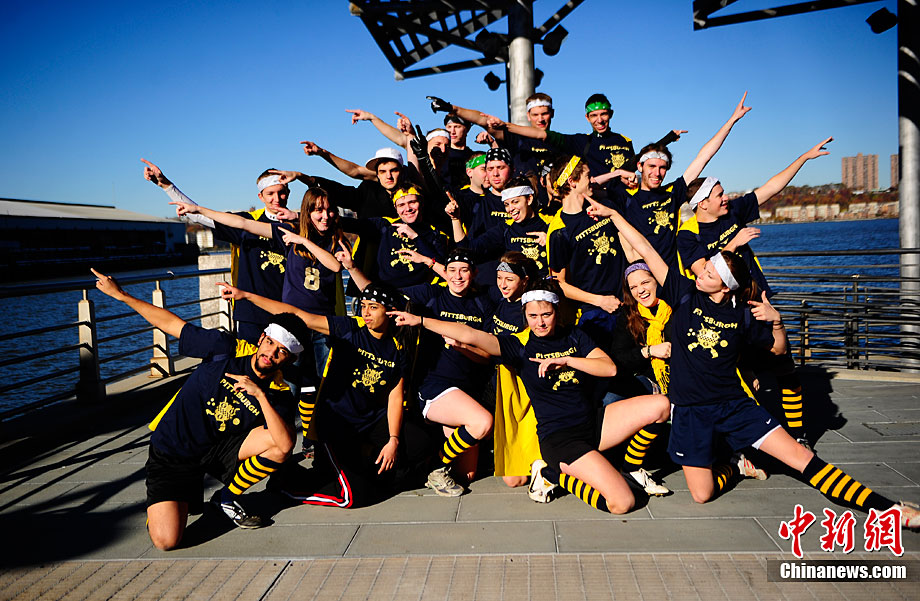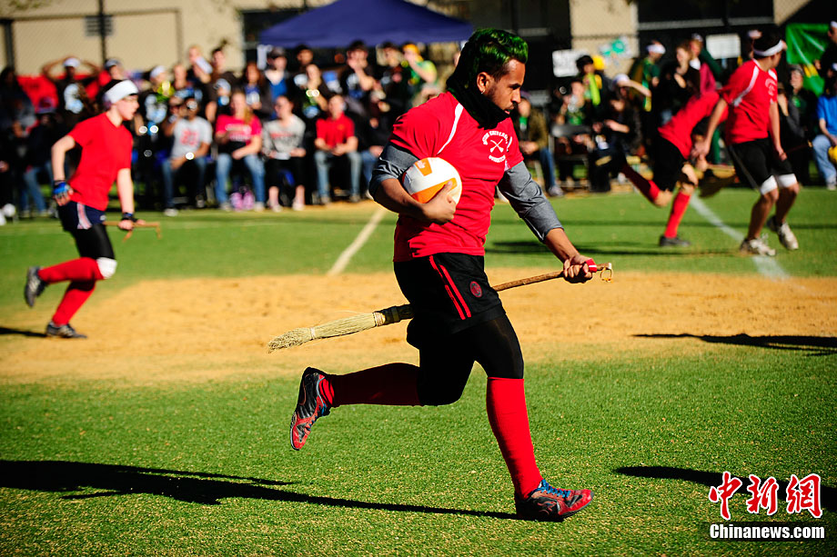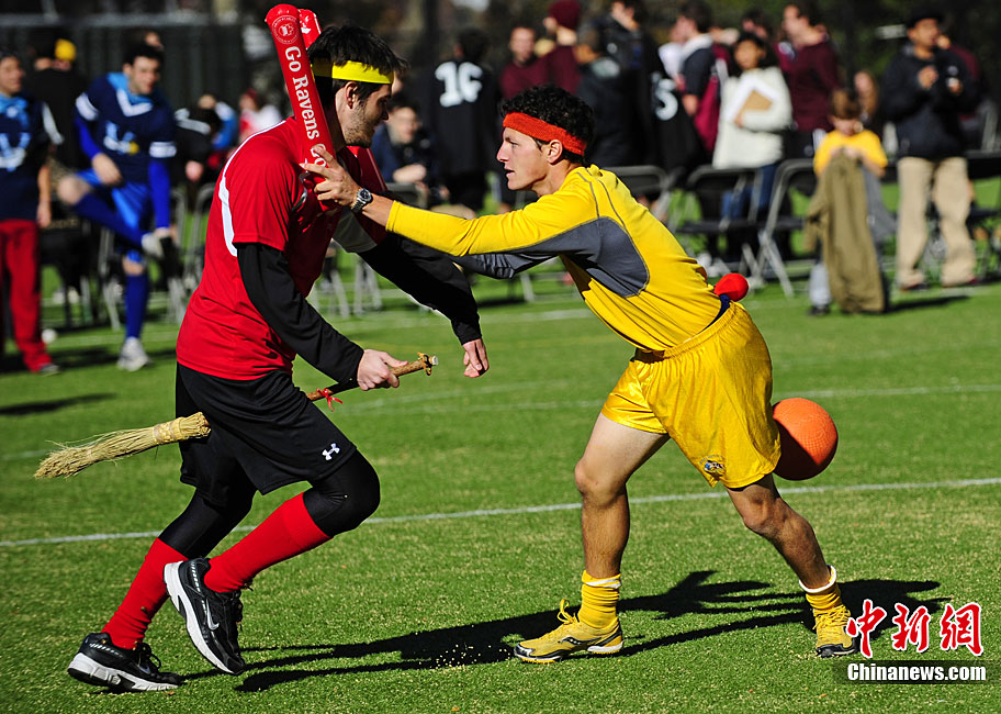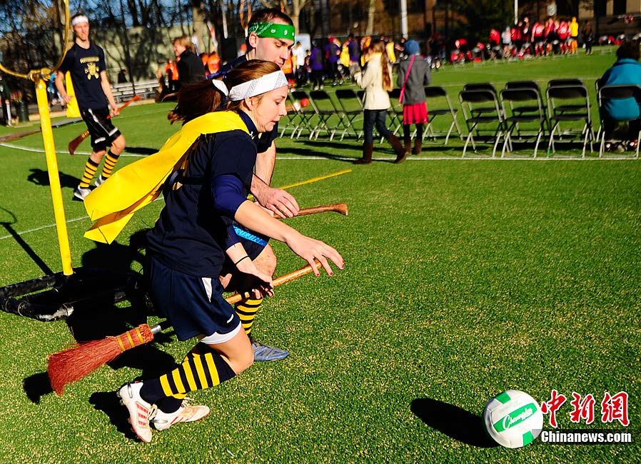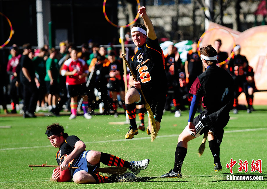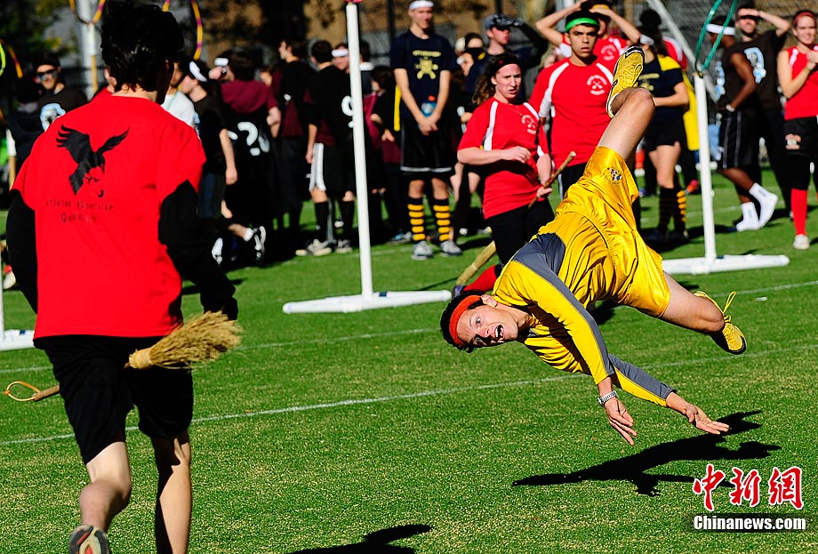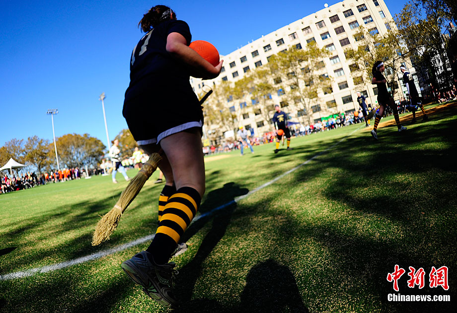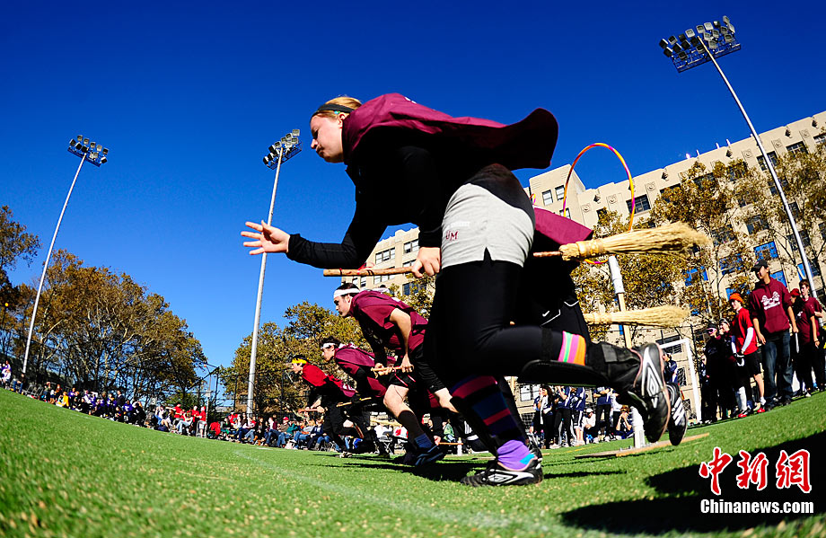 当地时间11月13日,数百名哈利波特迷们在美国纽约举行了第四届魁地奇世界杯比赛。看过《哈利·波特》小说或电影的人都会对其中描写的魁地奇球赛印象深刻。现实版的魁地奇比赛严格遵循原著风格,并发展成了一项混合手球、躲避球,还掺杂了一点曲棍球的新奇运动。