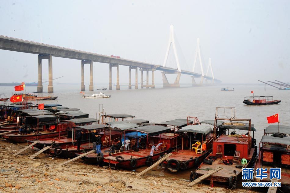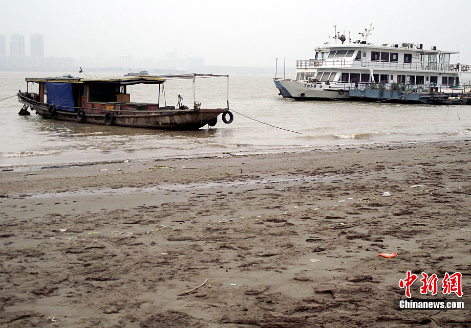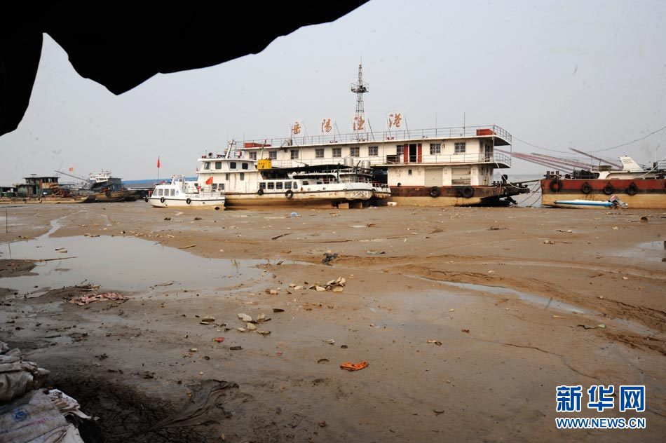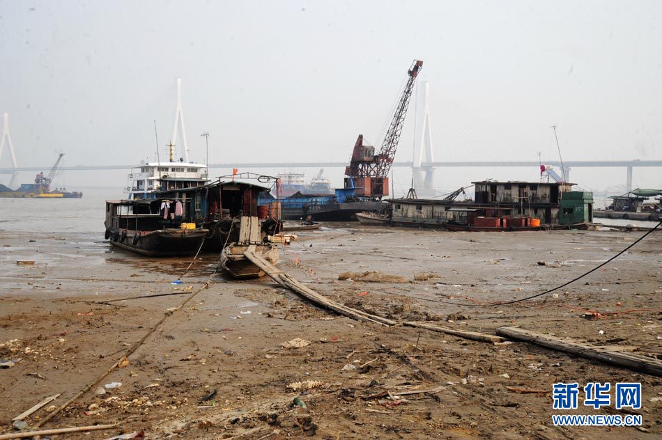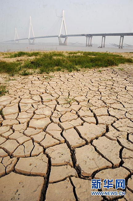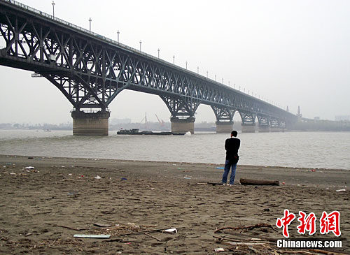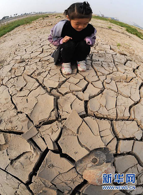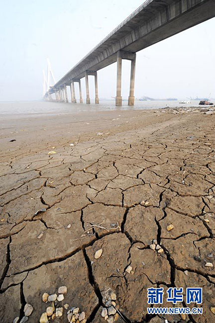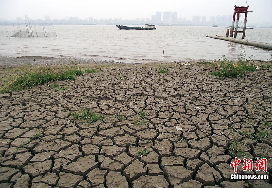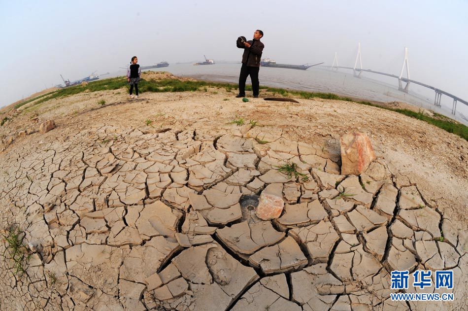 截至2010年11月14日17时,长江南京段水位降至4.08米,大片江岸河床裸露。近期,受中上游枯水和区域降雨量减少等因素影响,长江南京段水位连续下降。图为11月14日,长江南京段南侧江岸河床裸露,土层龟裂。图片来源:CNSPHOTO 安东 摄
