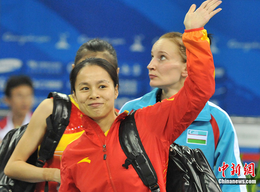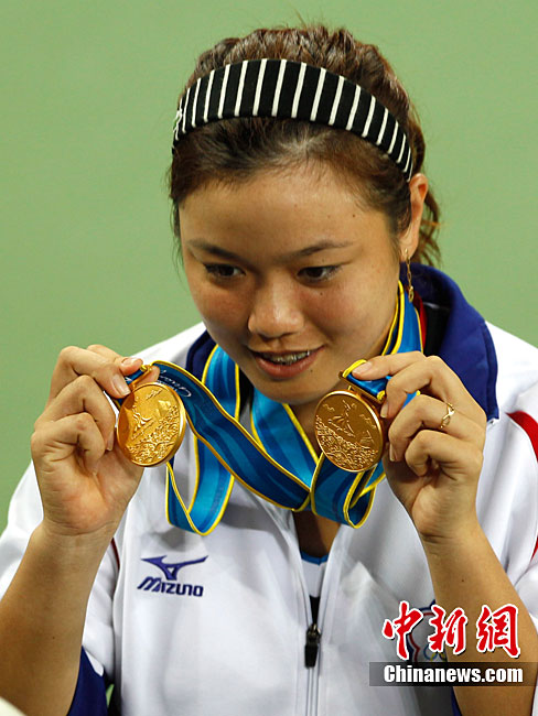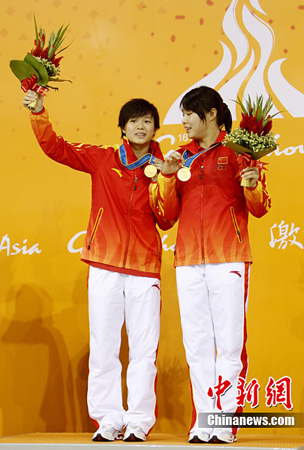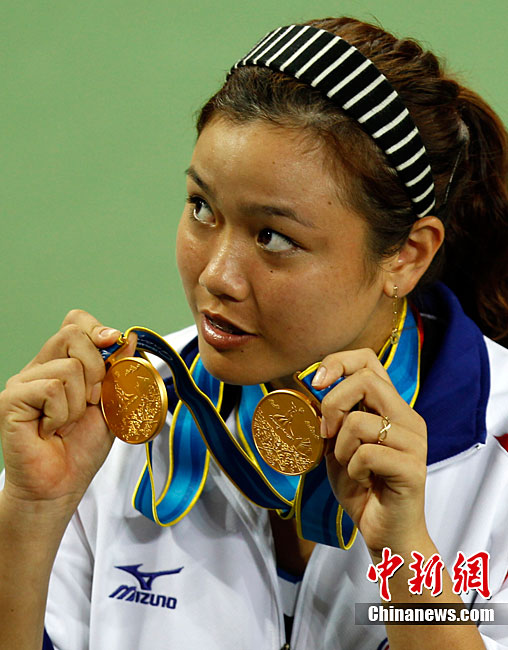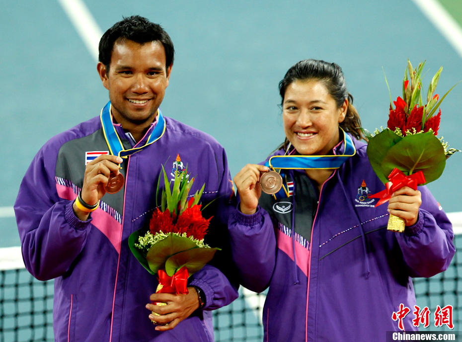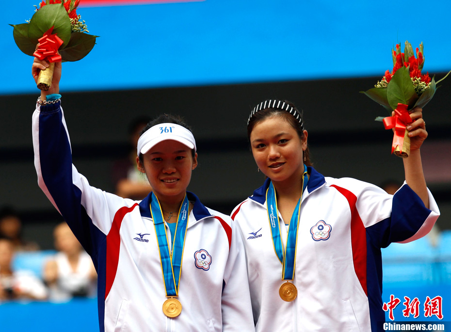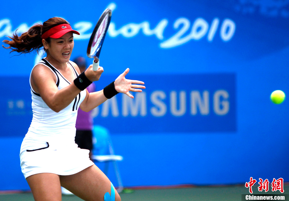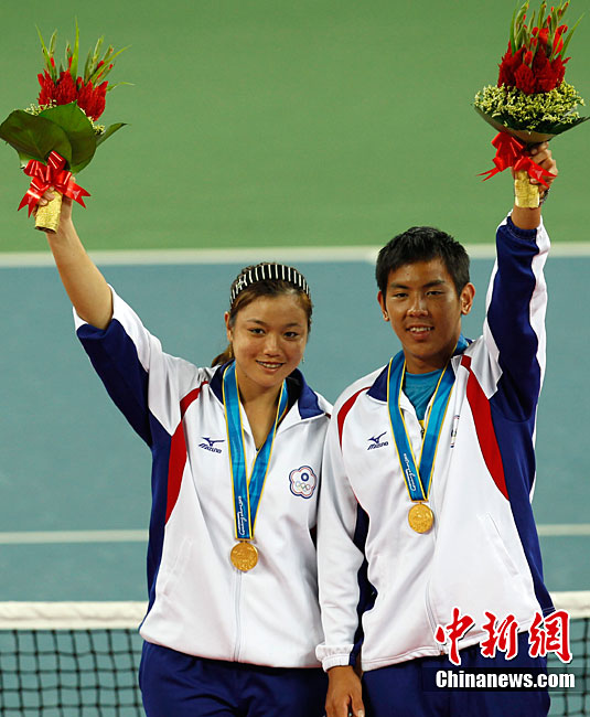 第十六届广州亚运会网球混双决赛11月22日举行,中华台北选手詹咏然、杨宗桦上演逆转好戏,以2:1击败印度组合米尔扎/维什努瓦尔丹,为中华台北队再添一枚金牌。中新社记者 赵振清 摄