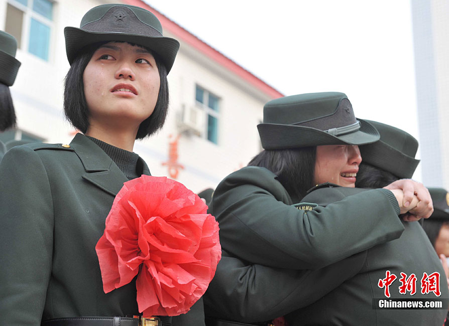 11月24日,武警贵州省总队数千名老战士光荣退伍。在这些退伍老战士中,“巾帼英雄”们离队前的那一抹微笑与相拥而泣的场面叫人难以忘怀。她们扎根警营,把最美丽的青春之花铭刻在武警部队建设的史册上,以实际行动展现了新时期一批又一批的“花木兰”形象。字凤春 摄 图片来源:CNSPHOTO