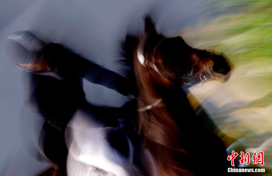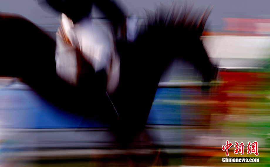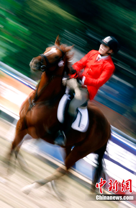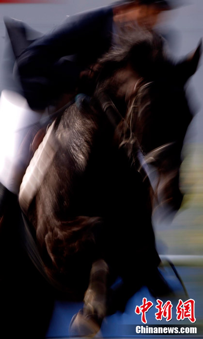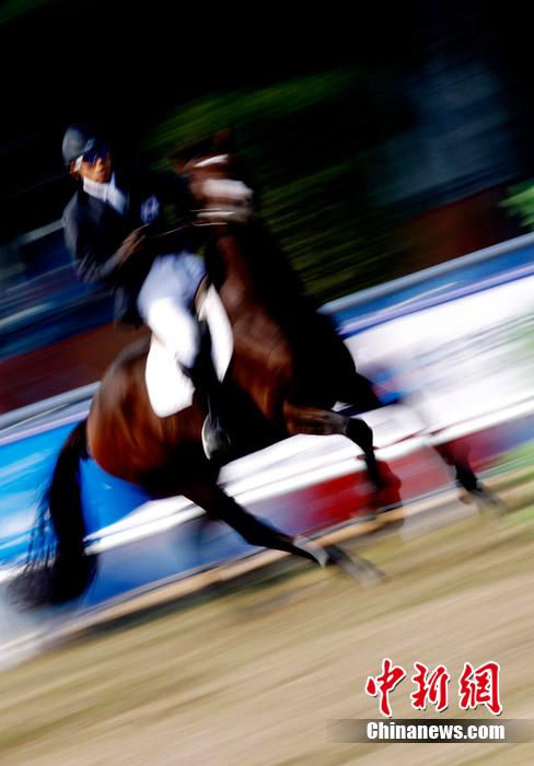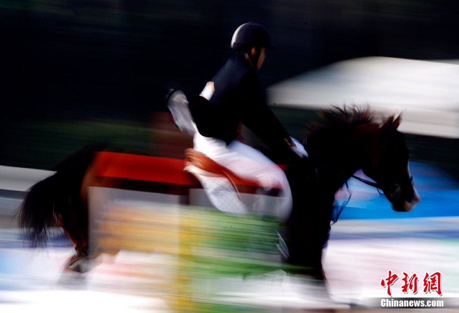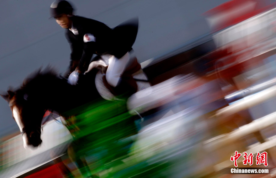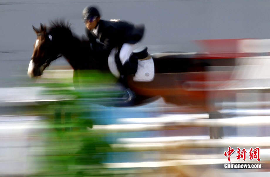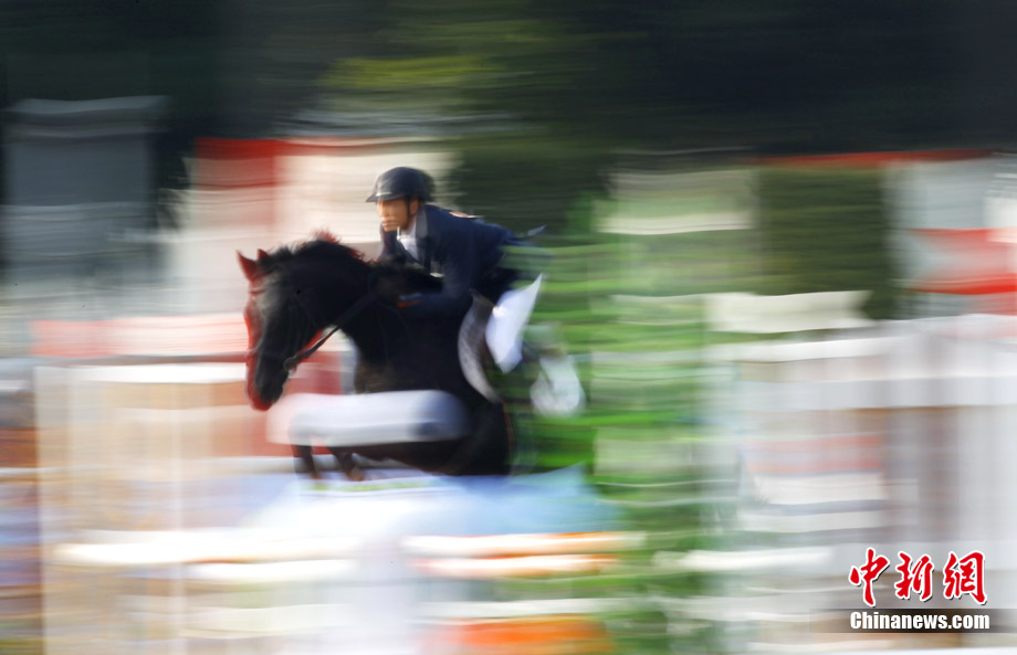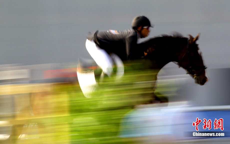 2010广州亚运会现代五项马术赛场精彩瞬间。中新社记者 杜洋 摄