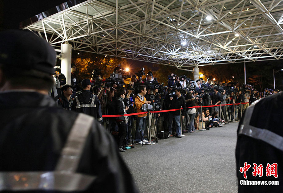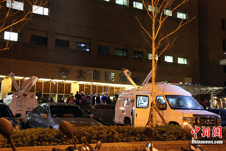 中国国民党荣誉主席连战之子连胜文26日晚在新北市永和参加造势晚会时,遭到近距离枪击重伤,经送往永和耕莘医院急救,再转送台湾大学医学院附设医院急救。图为在台大医院外,几十家媒体记者聚集在此等候消息。中新社记者 关向东 摄