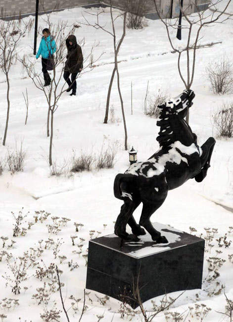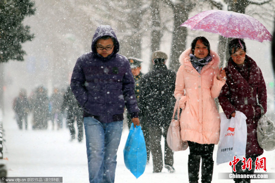 继26日夜晚伴有雷电的降雪天气后,2010年11月28日下午至夜间,辽宁丹东全境再次普降大雪,导致境内多条高速公路暂时封闭。陈浩 摄 图片来源:CFP视觉中国