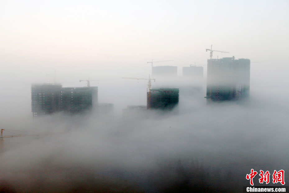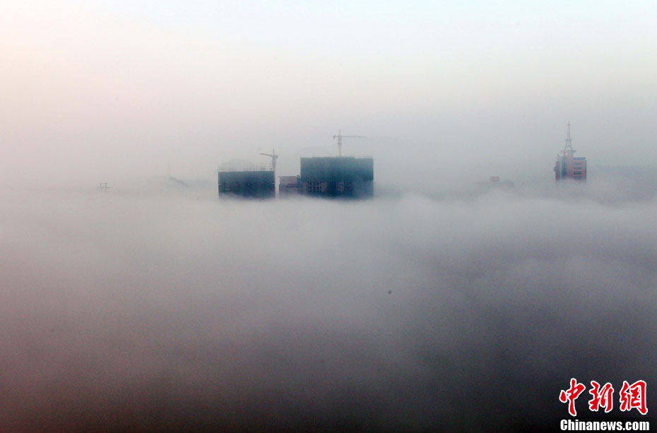 12月2日清晨,贵州省安顺市出现平流雾奇观,整个市区宛如仙境。 中新社发 卢维 摄 图片来源:cnsphoto