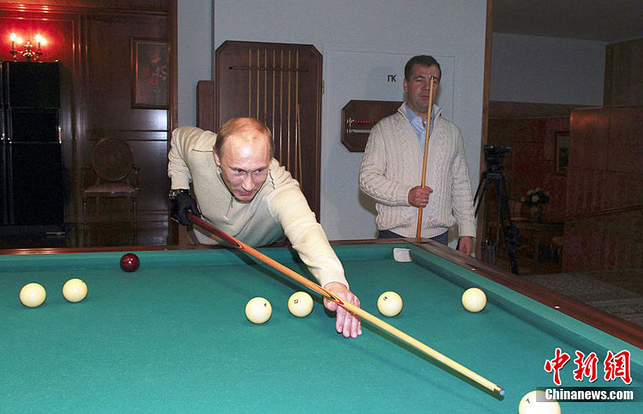 在瑞士苏黎世赢得2018年世界杯主办权的俄罗斯总理普京,当天飞到俄罗斯黑海海滨城市索契,与正在当地会见意大利总理贝卢斯科尼的俄总统梅德韦杰夫会合。3日晚间,梅普组合兴致勃勃地一起打台球看电影。